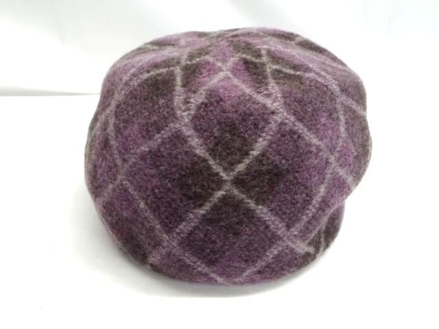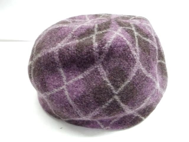 Borsalino★ボルサリーノ/ペレー帽/ウール/チェック柄/パープル/紫/57.5cm~56cm/M~Sサイズ【中古】K250403TK-02
