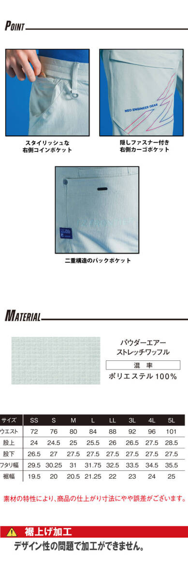 ・素材 : パウダーエアーストレッチワッフル ポリエステル100%
