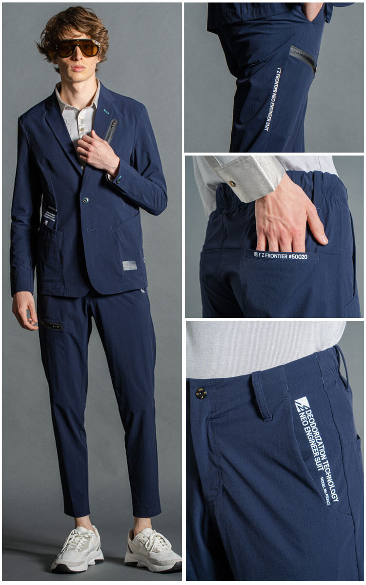 ・従来のスーツでは類を見ないポップなルックスで、オン・オフ問わず様々なシーンに対応するカジュアル感が大きな魅力です。