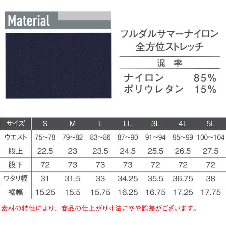 ・素材 : フルダルサマーナイロン全方位ストレッチ