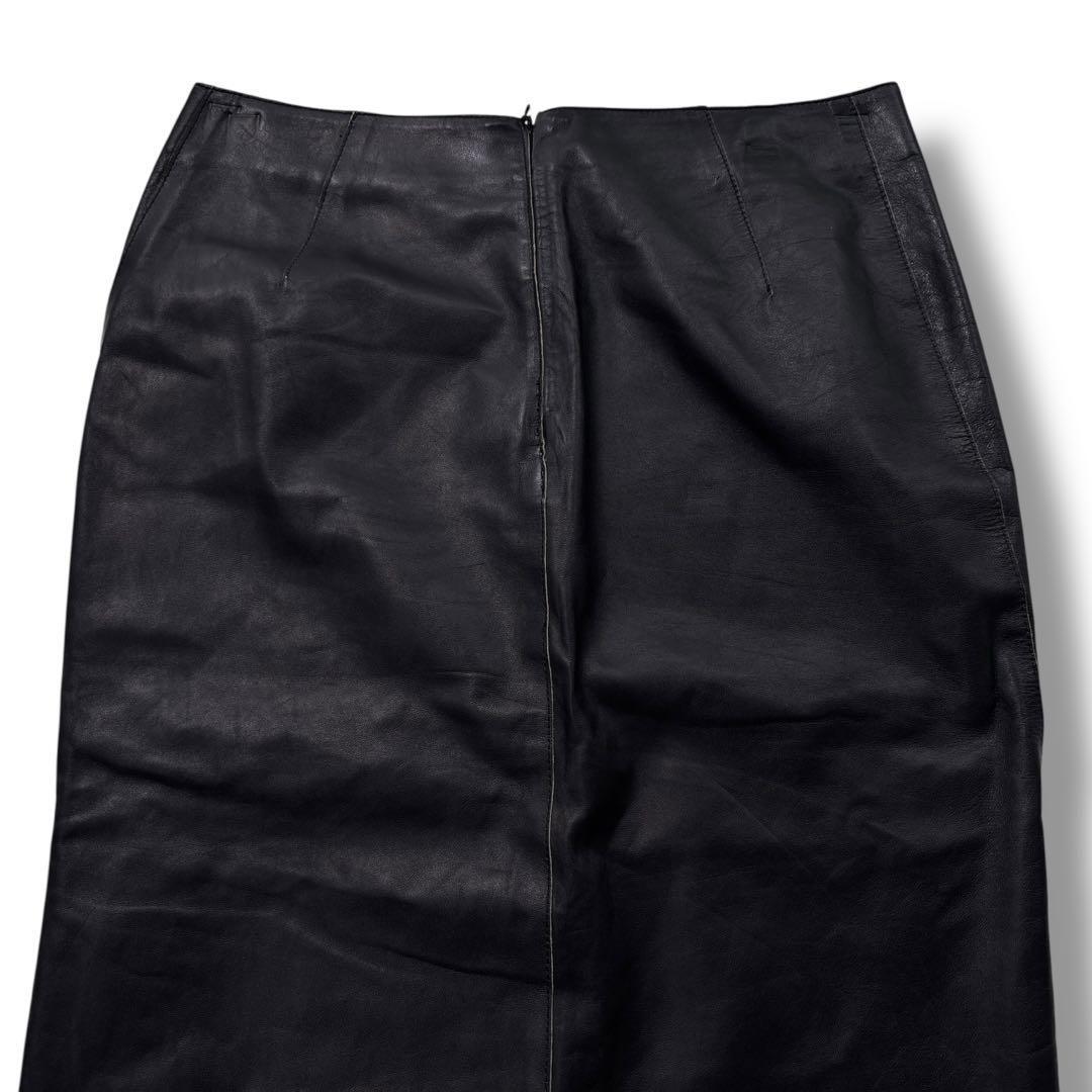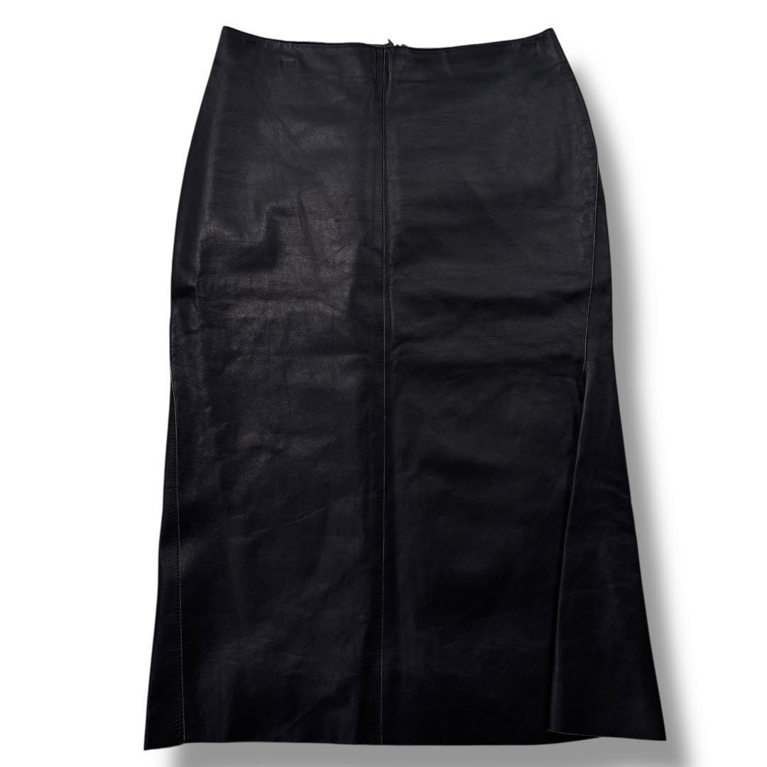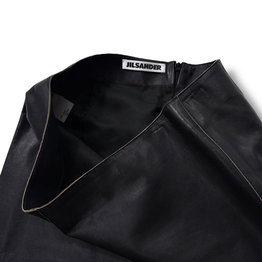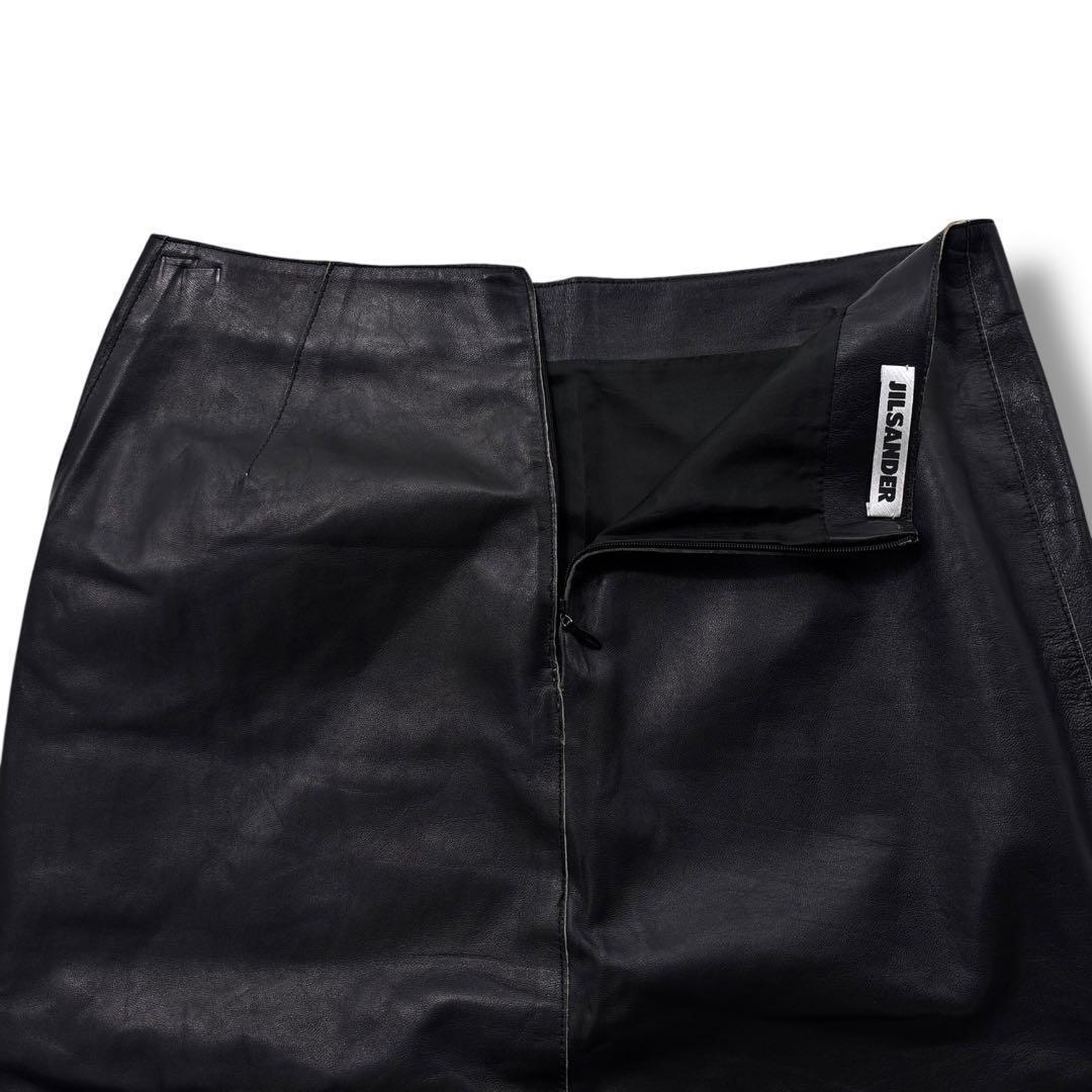 【希少 高級】JIL SANDER ジルサンダー スカート レザー 黒 膝丈 本革 マニッシュ ヴィンテージ