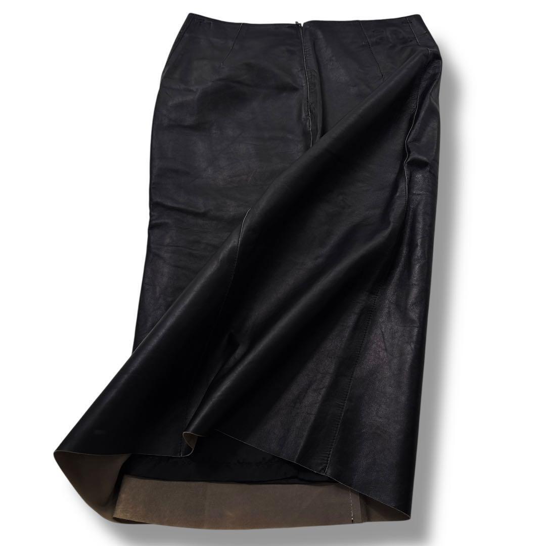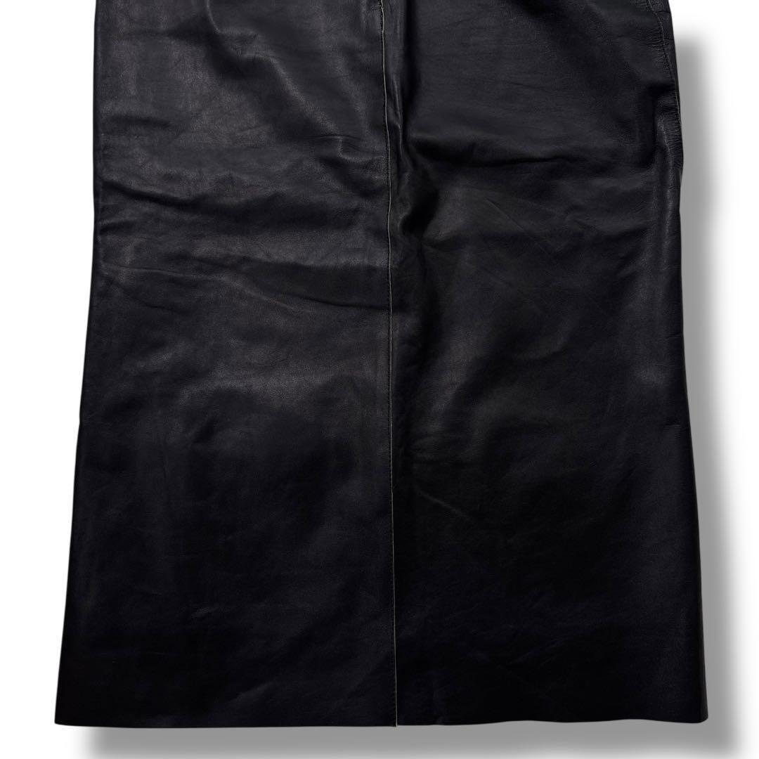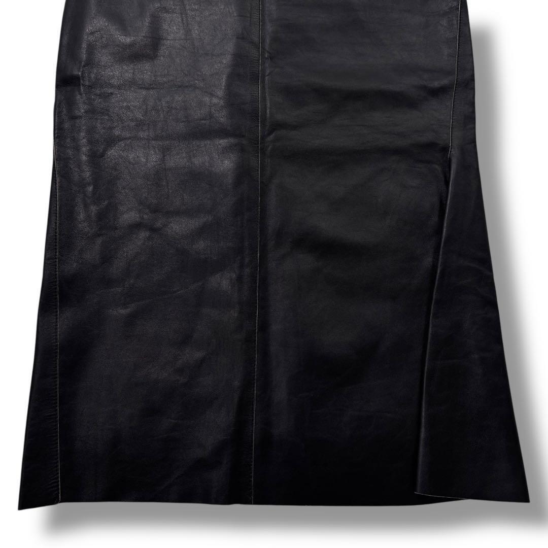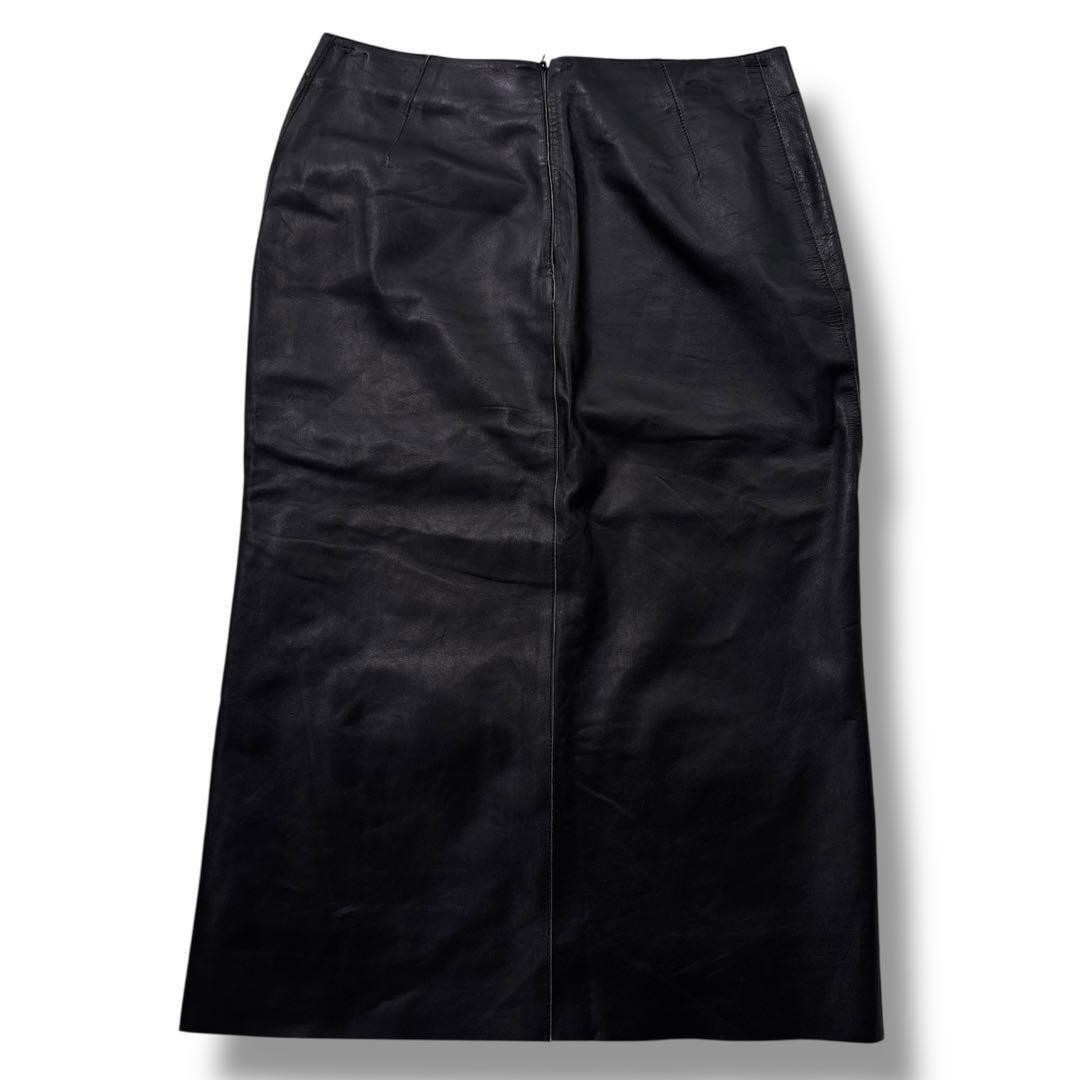 【希少 高級】JIL SANDER ジルサンダー スカート レザー 黒 膝丈 本革 マニッシュ ヴィンテージ