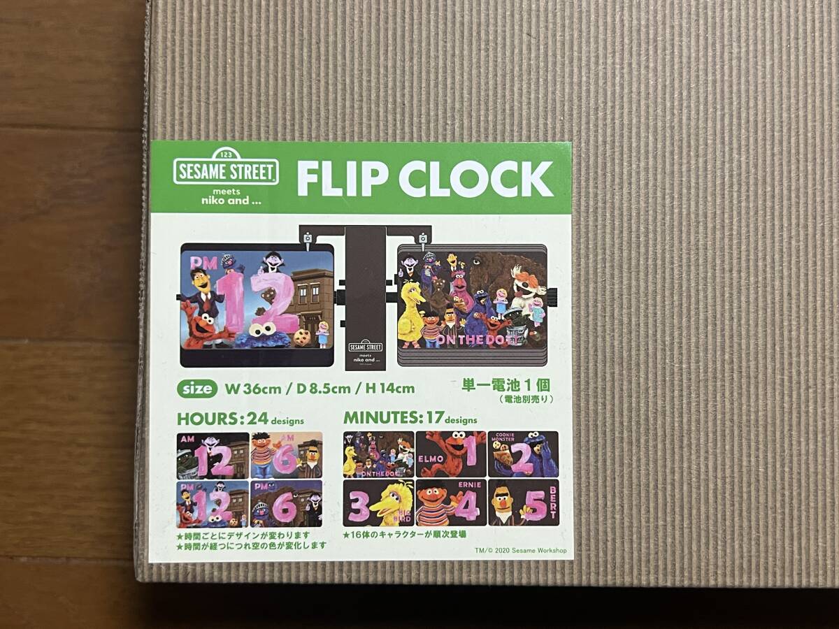 セサミストリートのキャラクターが1枚1枚に描かれているパタパタ時計です。