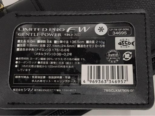 1円 シマノ リミテッドプロ FW ジェントルパワー 90 NL 34695 鮎竿 ケース付き 釣り具 フィッシング用品 SHIMANO |