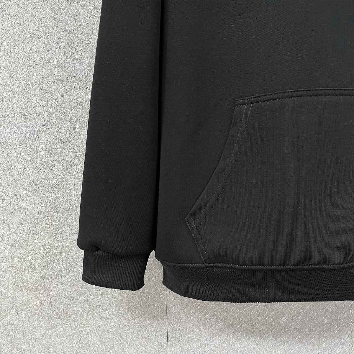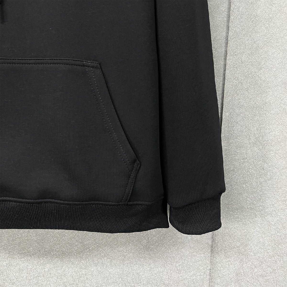 ベーシックで合わせやすいカラーなので様々な色のボトムスとも相性ばっちりです。バックには注目度抜群なプリントを配置、胸元にもインパクトのあるデザインがあり、ストリート感あるお洒落を演出、スタイリングをリードします。フロントのカンガルーポケットがあり、小物の収納に便利だけでなく、スポーティな印象を醸せます。