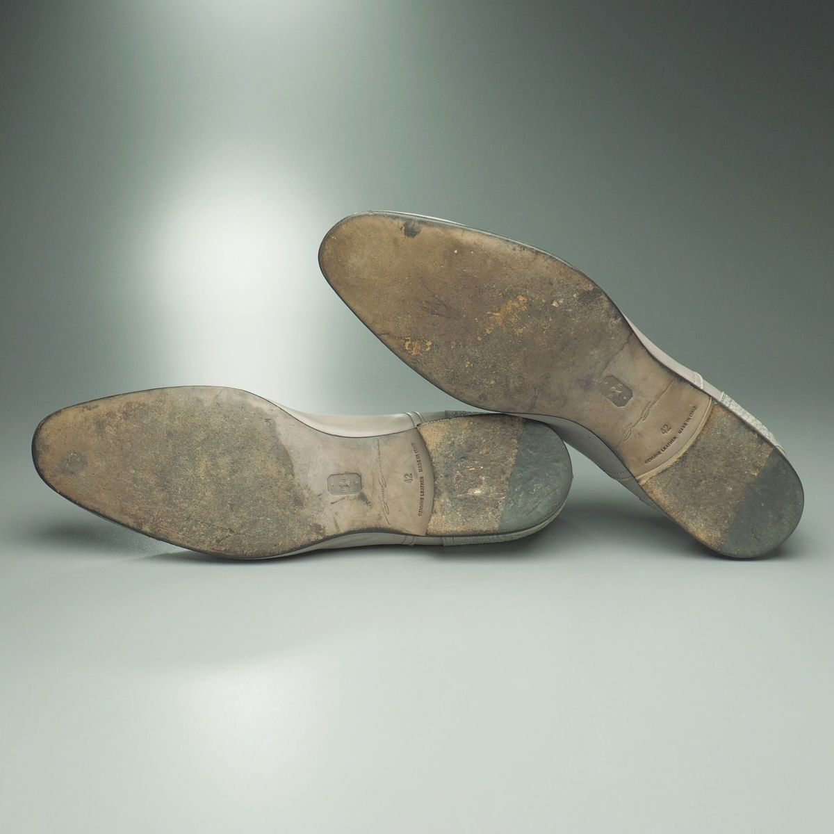 【コンディション詳細】 アッパーのシワ、汚れやシミ、薄い擦れが所々見られますが、その他支障になるようなダメージ等はなくこれからも十分にご愛用いただけるコンディションです。 アウトソールの減りはトゥ・ヒール共に1mm程度です。 |