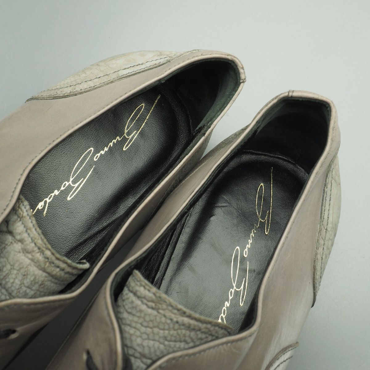 イタリアのシューズブランド「ブルーノボルデーゼ/Bruno Bordese」の一足です。 柔らかなグレーのスムース革と本オーストレッグ(ダチョウの脚の革)を合わせたユニークなデザインのキャップフロントシューズ。 返りも柔軟で歩きやすく、ストレスなく快適な履き心地を備えます。 アウトソール:レザー トップリフト:レザー×ラバー ライニング:レザー 生産:イタリア製 ※撮影用のシューキーパーは付属致しません。 ※本物の商品ですのでご安心の上オークションをお楽しみ下さい。 ※タイトル頭の英数字は弊社の管理番号です。 ※ほかにも多数の商品を出品しています。 ※同梱に関しましては「まとめて取引」でのみ対応可能です、その他の方法での同梱対応は出来かねます。 (※商品の特性上、同梱対応出来ない商品もございますので予めご了承下さい。) |