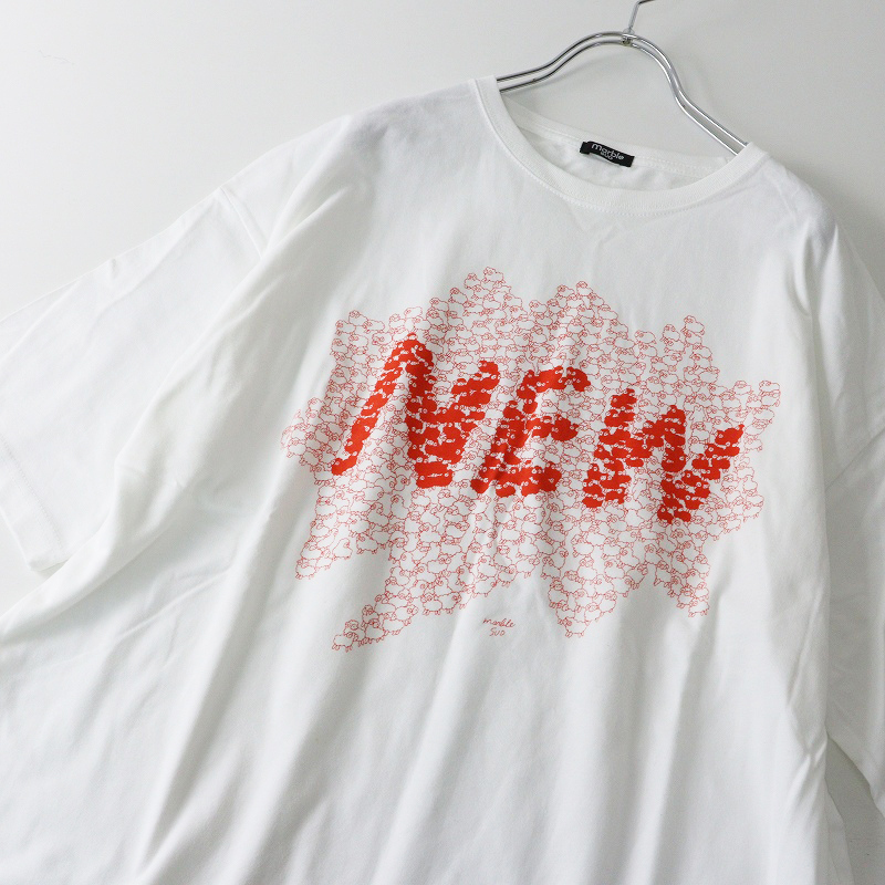 マーブルシュッド marble SUD NEW アルパカ プリント ビッグTシャツ ホワイト×レッド┃BIG TEE トップス【2400014635928】
