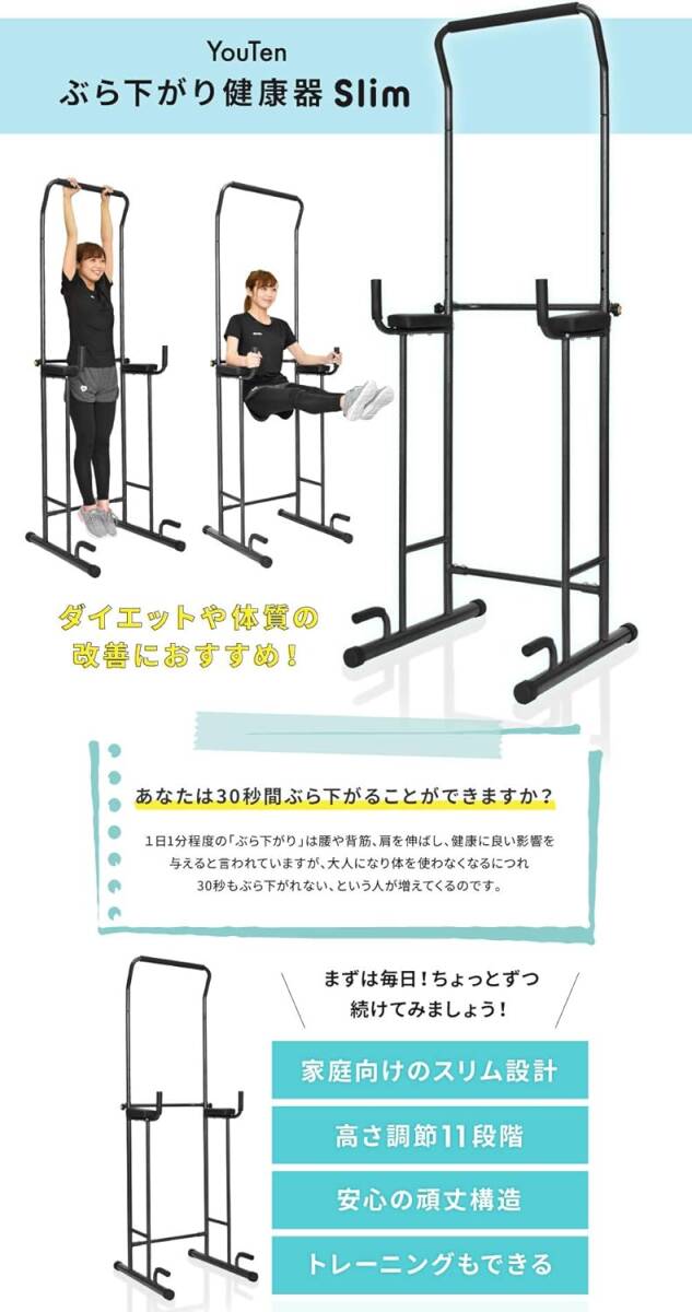 ユーテン 懸垂マシン ぶらさがり健康器 懸垂バー 筋トレ 懸垂 筋トレグッズ ぶら下がり健康器【高さ223cm/コンパクト】