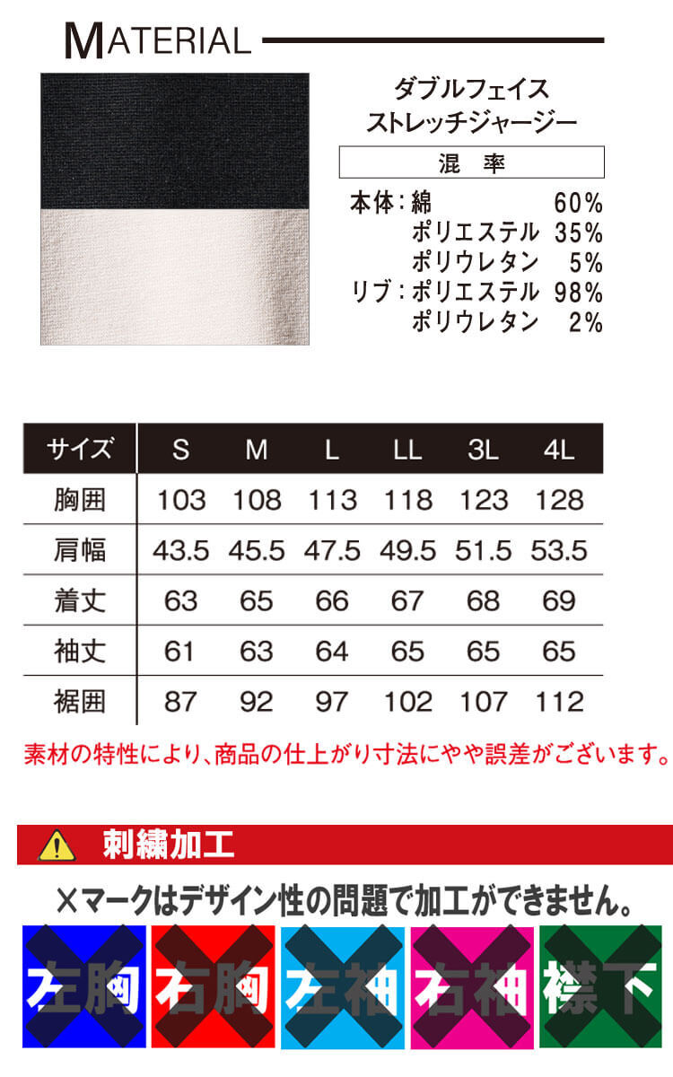 ・混率 :綿60% ポリエステル35% ポリウレタン5%