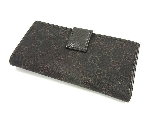 1円 GUCCI グッチ 143389・1147 GG柄 GGキャンバス×レザー 二つ折り 長財布 ウォレット 小銭入れ 札入れ レディース ブラック系 FV2428