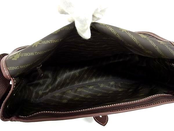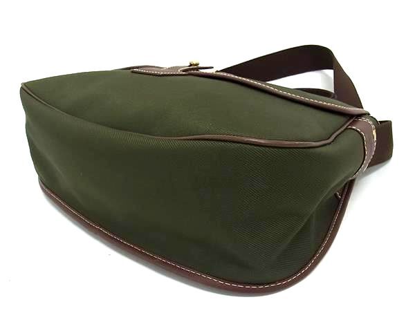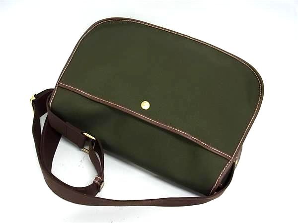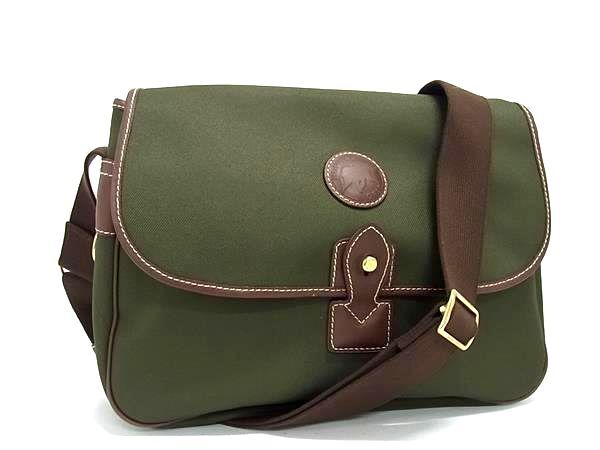 1円 ■美品■ HUNTING WORLD ハンティングワールド キャンバス×レザー ショルダーバッグ クロスボディ メンズ カーキ系 FR4647