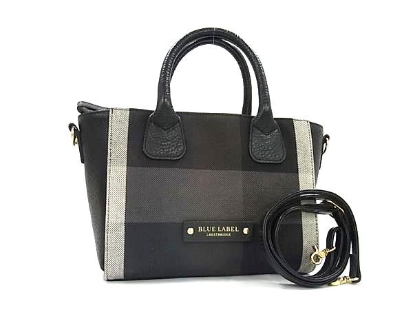 1円 BLUE LABEL CRESTBRIDGE ブルーレーベル クレストブリッジ キャンバス×レザー 2WAY ハンドバッグ ショルダー ブラック系 FR5017