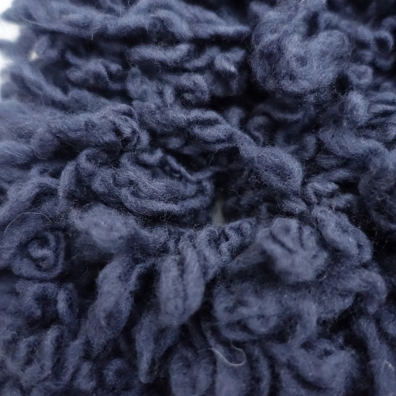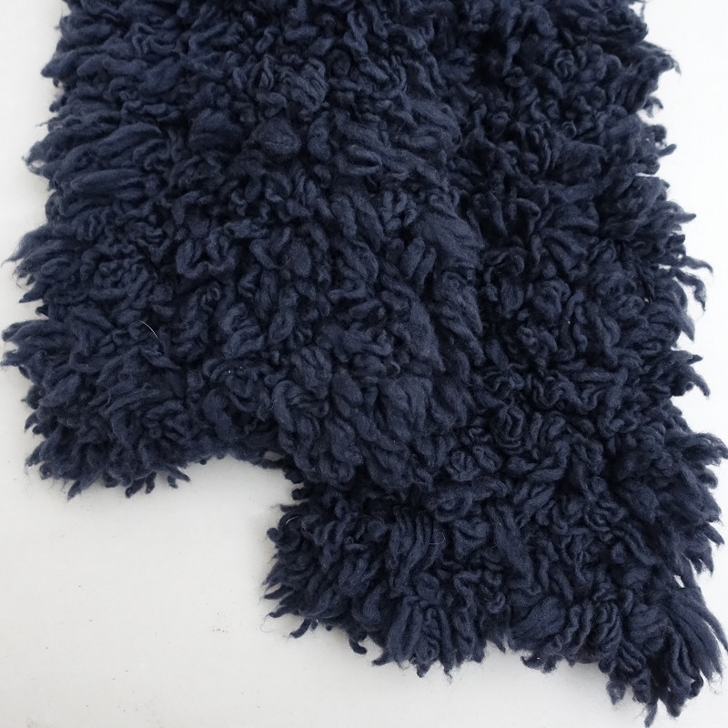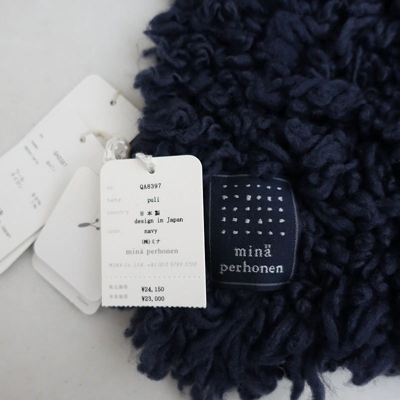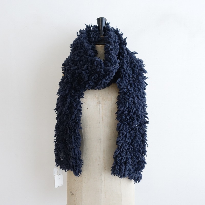 mina perhonenのpuli ニットマフラーです。カラーはネイビーで、プードルの毛足のようなゆるくゆったりと編まれたニット地で、素材は毛99%,ナイロン1%です。定価(メーカー希望小売価格)24,150円の商品です。 |