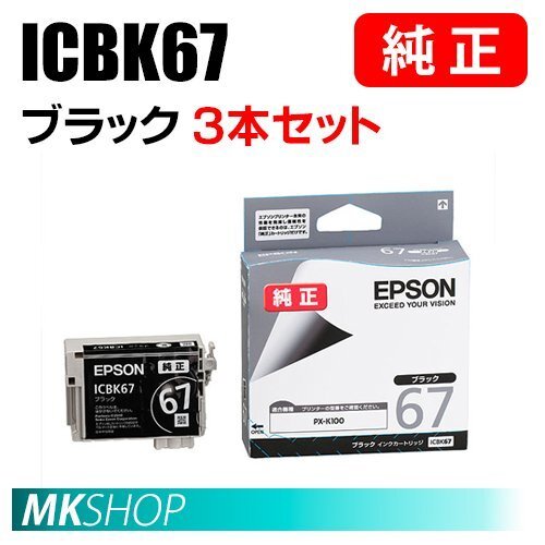 EPSON 純正 インクカートリッジ ICBK67 ブラック 3本セット (PX-K100/K100C2/K100C9用)