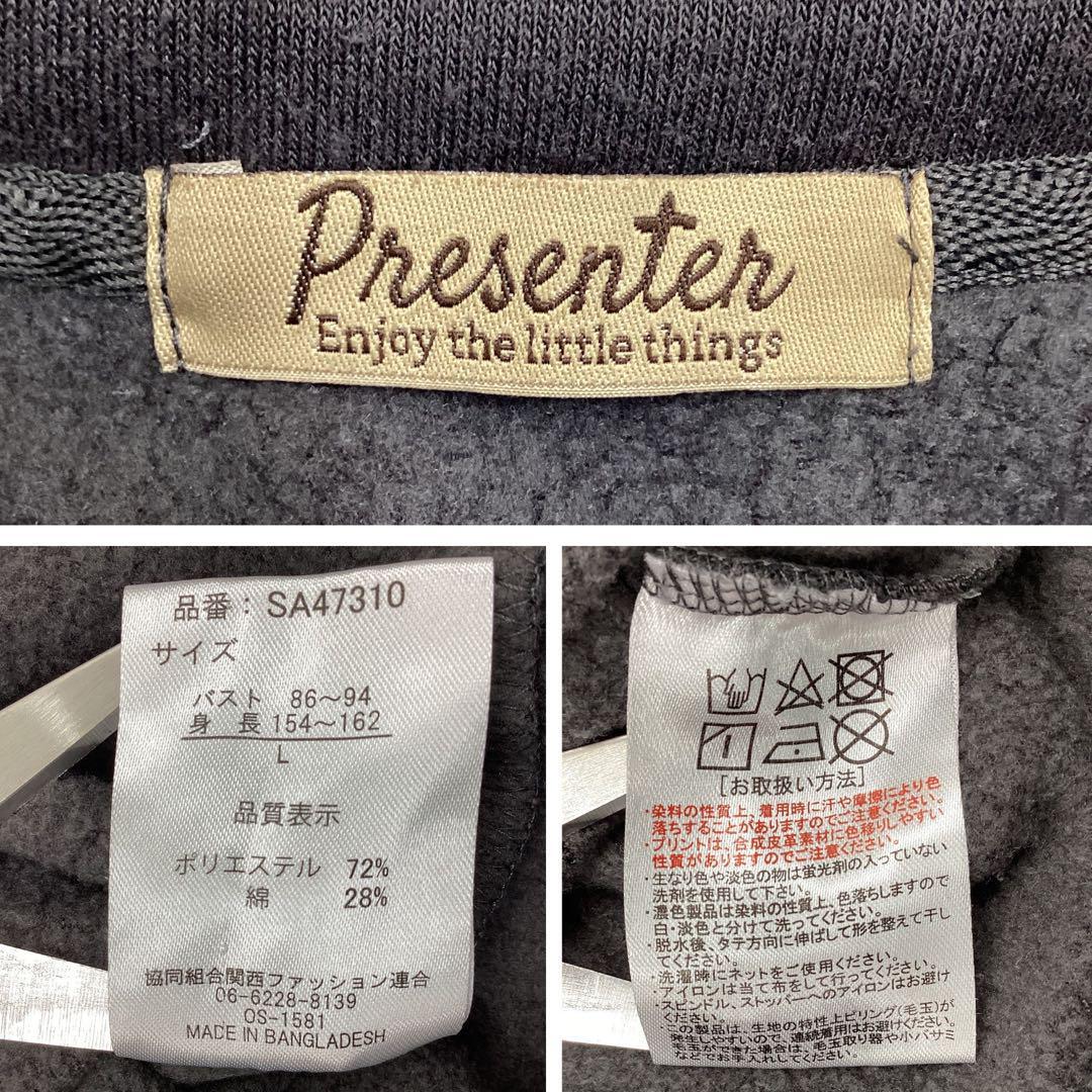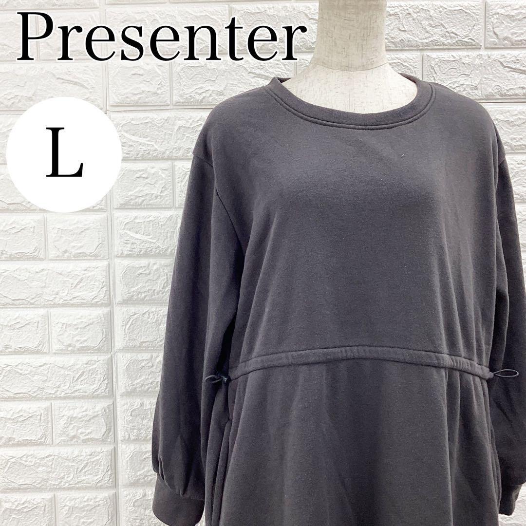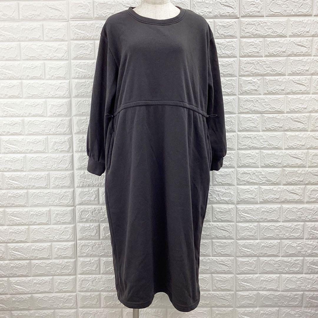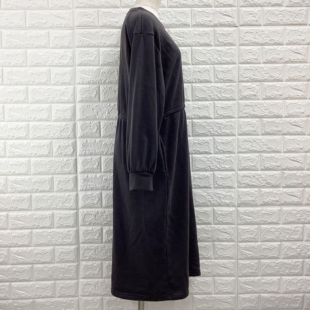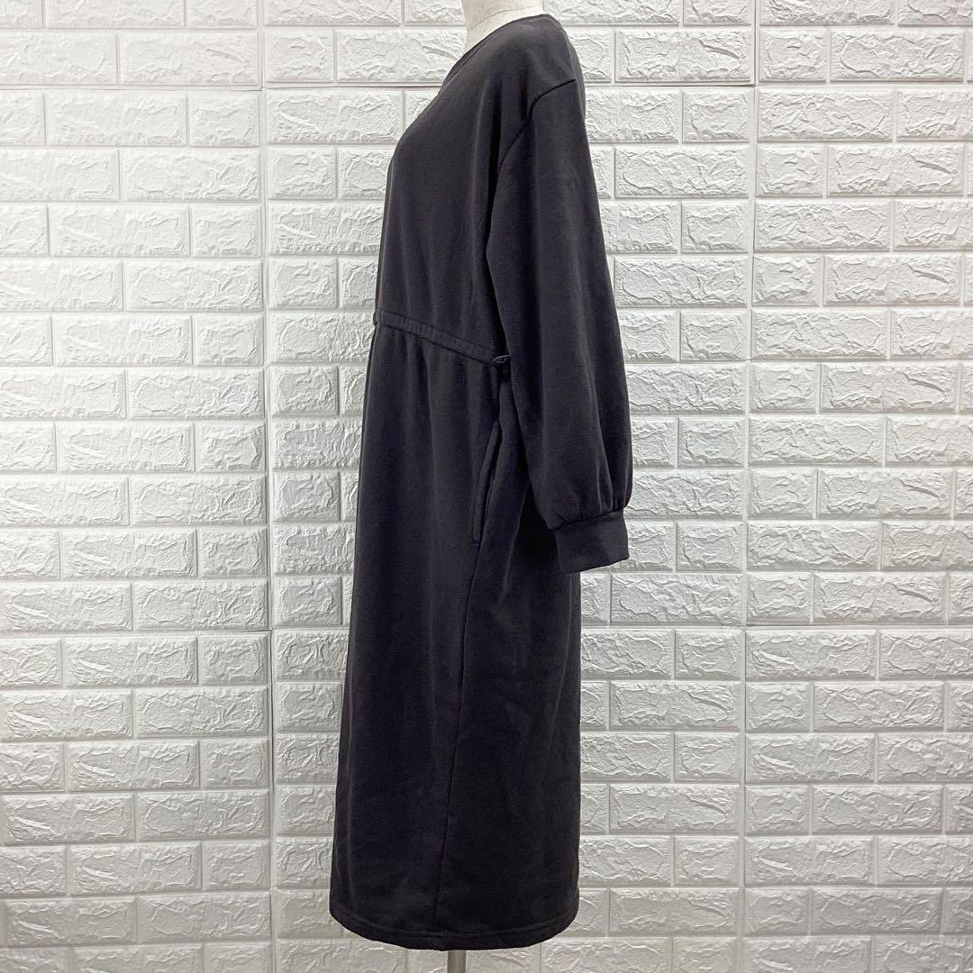 【A4357】 Presenter プレゼンター ロングワンピース スウェット 裏起毛 長袖 レディース グレー ドローストリング 部屋着