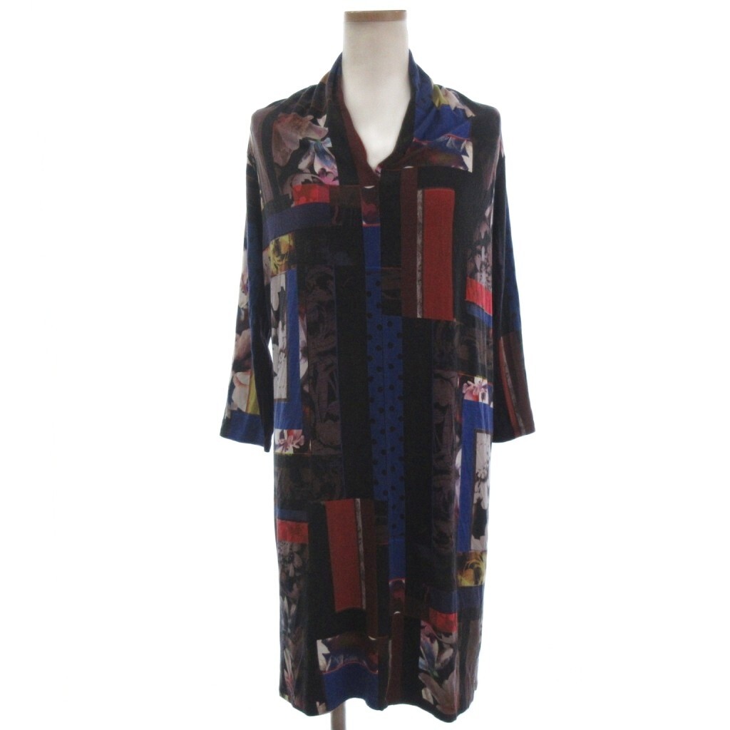 ポールスミス ブラック Paul Smith BLACK レーヨン カットソー チュニック 七分袖 総柄 転写 マルチカラー M ■ECT レディース