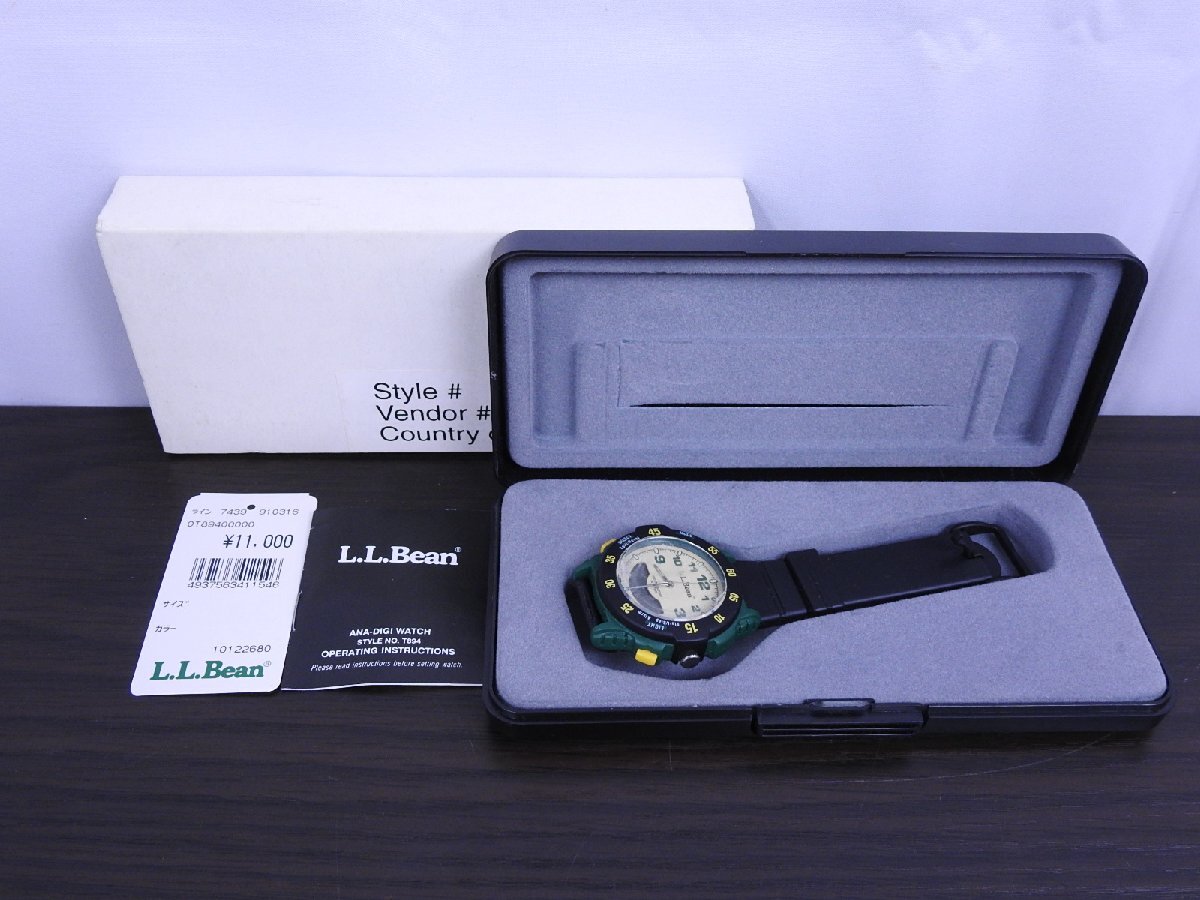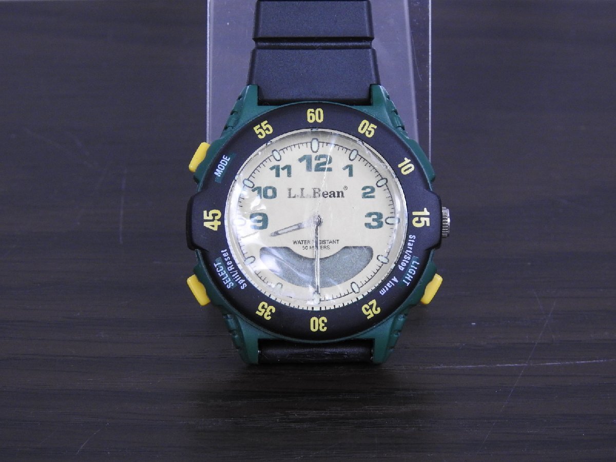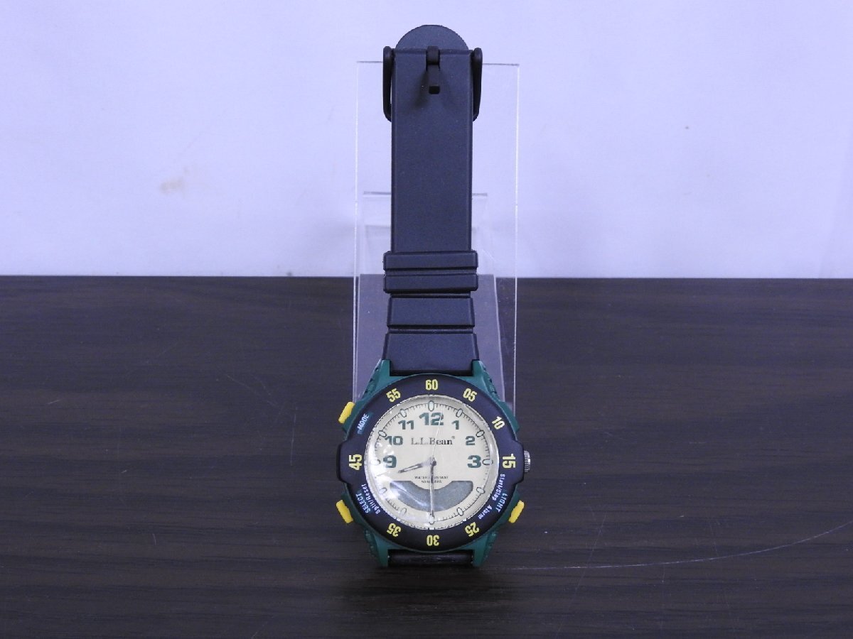 A-529 中古 ジャンク品 L.L.Bean エルエルビーン 腕時計 クオーツ 黒 グリーン ラバーバンド コンパス付き アナデジ ウォッチ メンズ