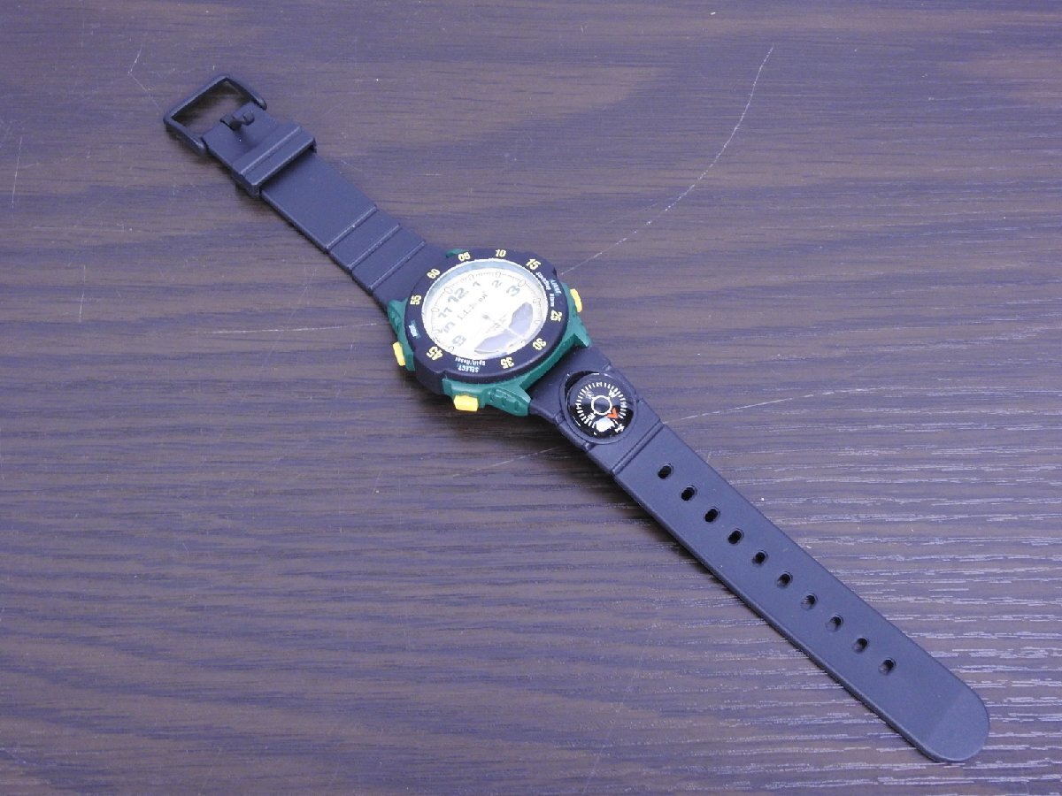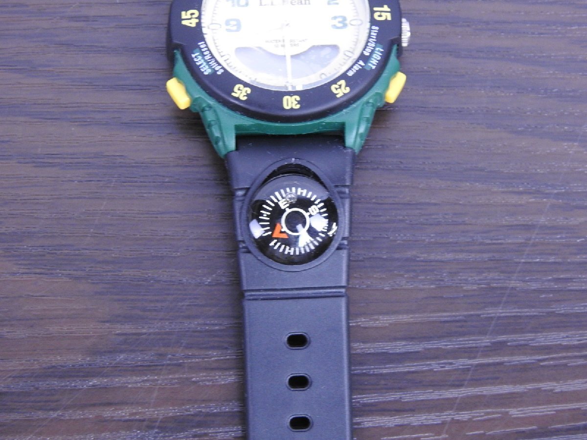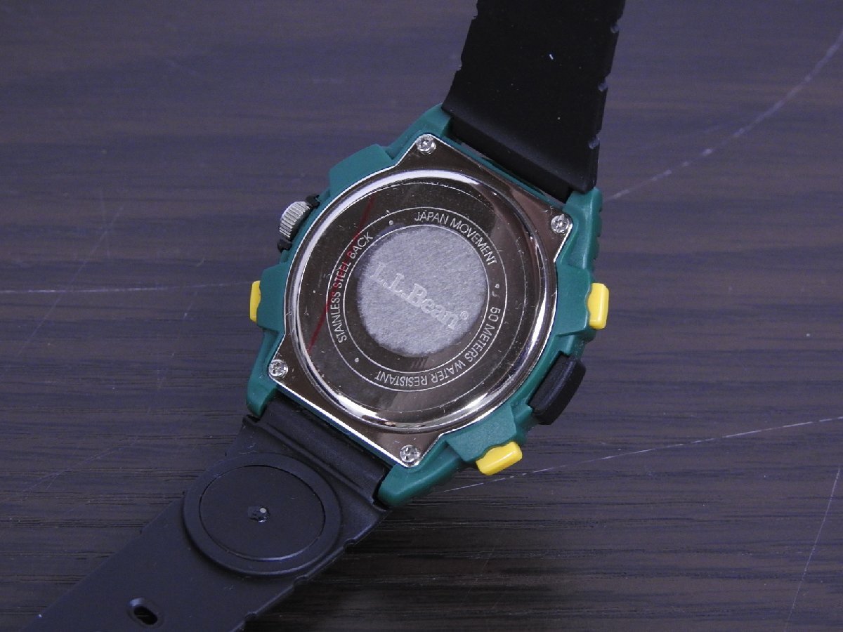 A-529 中古 ジャンク品 L.L.Bean エルエルビーン 腕時計 クオーツ 黒 グリーン ラバーバンド コンパス付き アナデジ ウォッチ メンズ