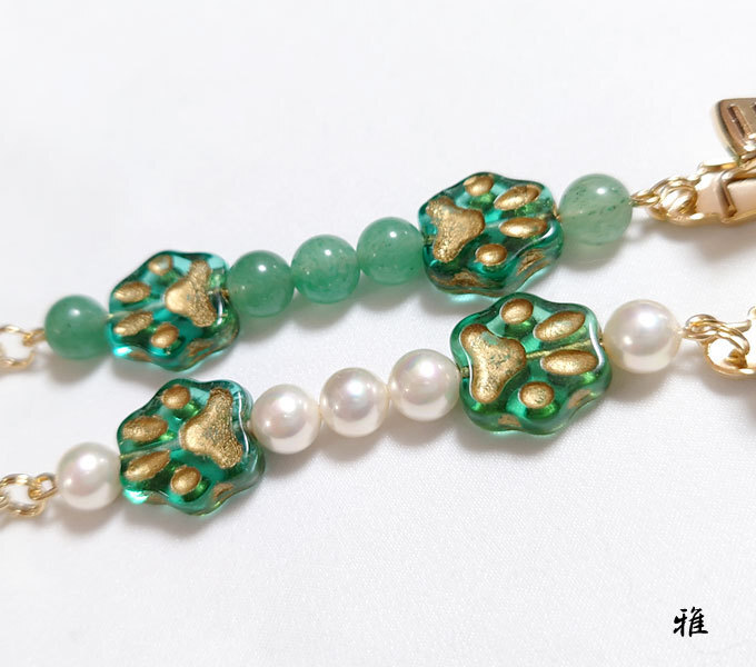 猫好きにはたまらない肉球型チェコビーズと天然石インド翡翠と