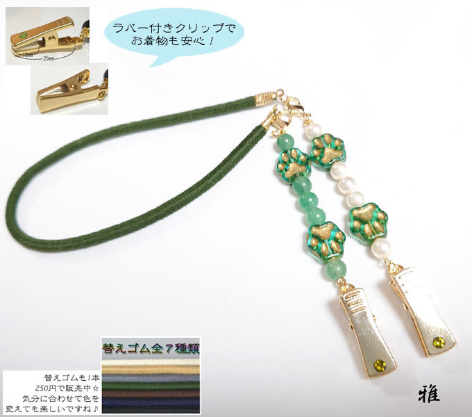 【 雅 】 取り外し可♪ 癒しの猫の肉球オリジナル 袂留め 緑