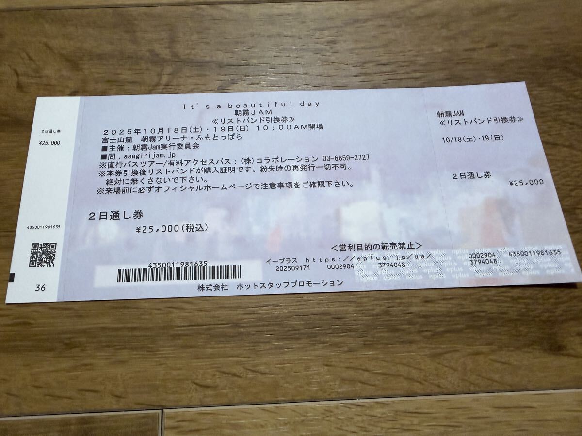 今年の朝霧JAMのリストバンド引換券1名分です。同行予定の知人が足をケガして参加できなくなったので出品いたします。