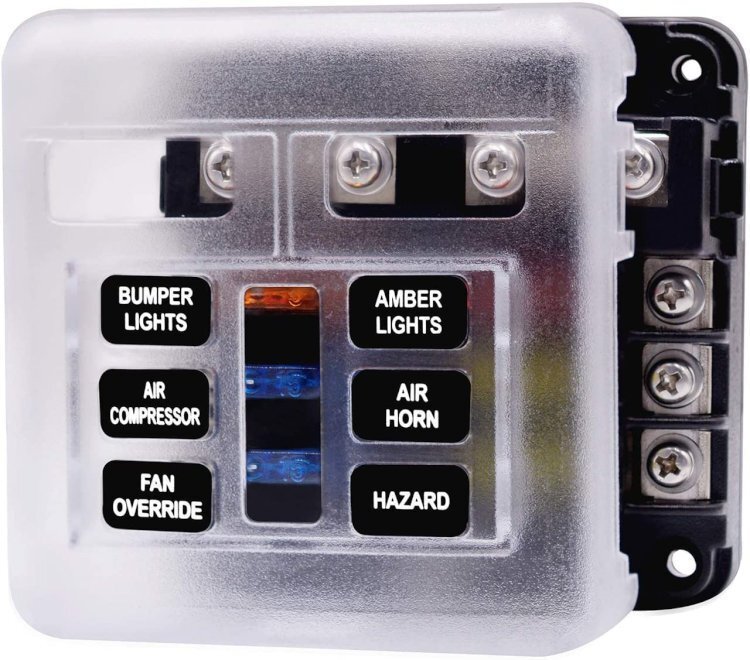 ◆6WAY回路 ヒューズホルダー ヒューズボックス スクエア型 6分岐配線12V‐32V汎用 5A 10A 15A 20A 耐熱性 絶縁性 カバー付き 自動車 ボートマリン トラックなどに CFB664A
