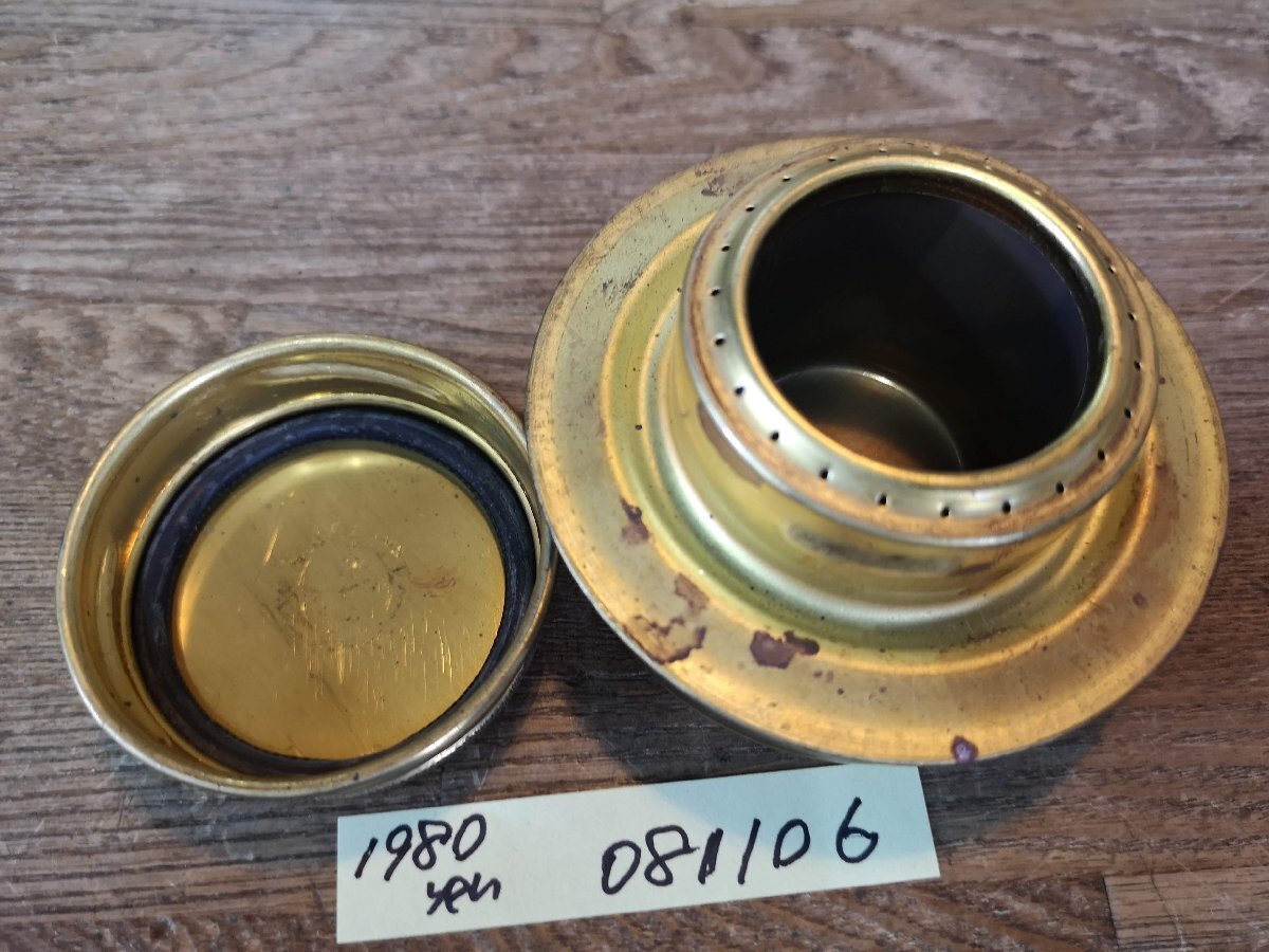 スウェーデン軍放出のSVEA刻印アルコールバーナーです。1枚目の写真は流用です。 蓋にクラックが若干ありますが実用には問題ないでしょう。ブラスで味があって良いかと思います。 現行のトランギアのものより少しだけ径が大きいです。 沖縄離島を除く元払い500円にてお送りします。落札価格にプラスでお願いします。