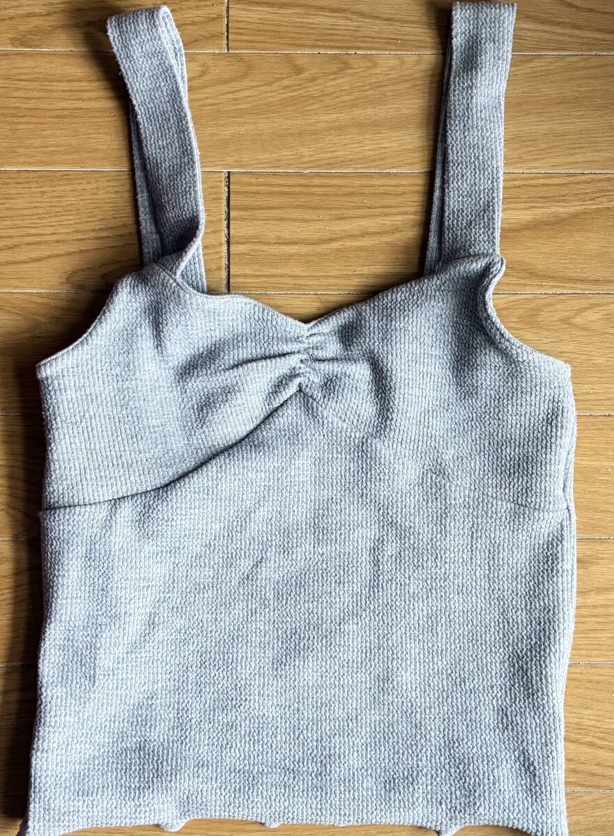 フロントに結び目のデザインが特徴的なグレーのキャミソールです。