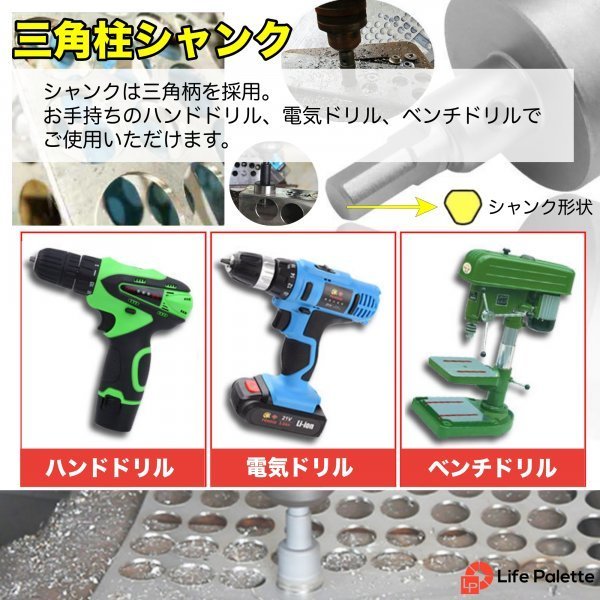 | 即納 ステンレス製 超硬 ホールソー ホルソー ホルソ 10点 セット 直径 16mm 18mm 20mm 22mm 25mm 26mm 28mm 30mm 40mm 50mm 切削工具 DIY 電気ドリル 穴あけ アルミ板、鉄板、木材、プラスチック、石膏ボード、金属 などの穴あけに DV9210X ・状態 : 新品 ・送料 : 全国一律1500円(沖縄・離島を除く) ・セット内容【ホールソー 10本セット(16mm 18mm 20mm 22mm 25mm 26mm 28mm 30mm 40mm 50mm)】 使用頻度の高いものを厳選! お得なステンレスホールソー10点セットです。 持ち運び・収納に便利な専用ケース付き♪ ホルソーの刃先部に超硬チップと特殊な加工により、切削抵抗の低減と耐摩耗性が向上。 センタードリル、スプリング付きで機能性も抜群! 鉄板、アルミ板、木材、ステンレス、塩ビ、FRPアルミ、金属合金 など多様な材質の穴あけ作業に便利です。 ご家庭でのDIY、電気工事や配管工事、穴あけや掘削など幅広い用途でご使用頂けます。 ・サイズ(直径) 16mm × 1点 18mm × 1点 20mm × 1点 22mm × 1点 25mm × 1点 26mm × 1点 28mm × 1点 30mm × 1点 40mm × 1点 50mm × 1点 センタードリル付 専用ケース×1 その他ホールソーセットはこちらから♪ ※ドリルや旋盤へのホールソーの取り付けはしっかりと行ってください。 ※穿孔面に強く当てたり、硬いものにぶつけたりすると、チップの破損を起こしますので当てないようにしてください。 ※噛み込みや破損の原因になりますので、極端な回転数の変動は避けてください。 ※大きな口径のものほど、低い回転数でお使いください。研磨油のご使用をお勧めいたします。 ※取扱説明書は付属しておりません。 ※輸入品につき本体に僅かなキズ・スレ・さび汚れなどがつく場合があります。 ※入荷時期により予告無くデザイン・色・サイズなど、細かな仕様が変更される場合がございます。 | ||