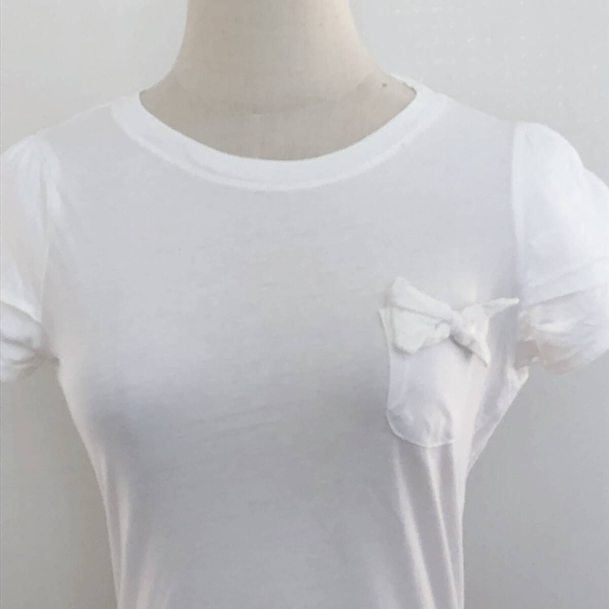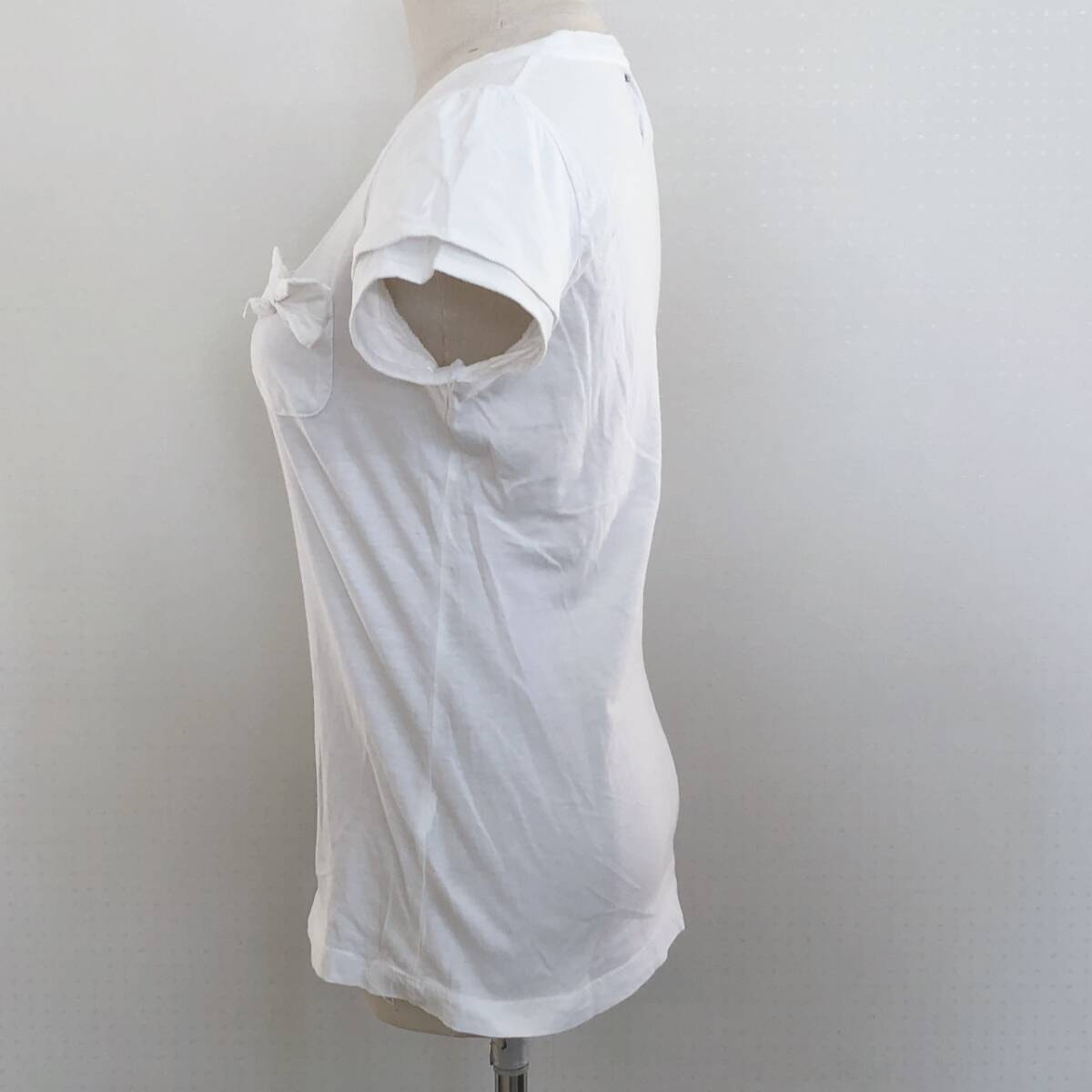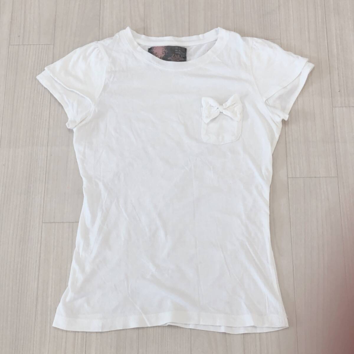 Y2364 ZARA ザラ レディース Tシャツ 薄手 半袖 胸ポケット 首元リブ M ホワイト 白 無地 コットン100% リボン キュート かわいい 春夏