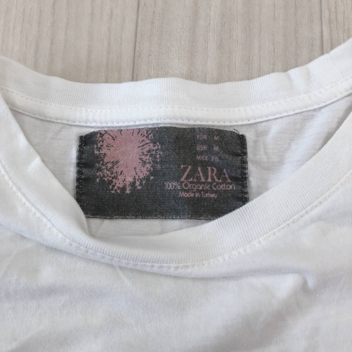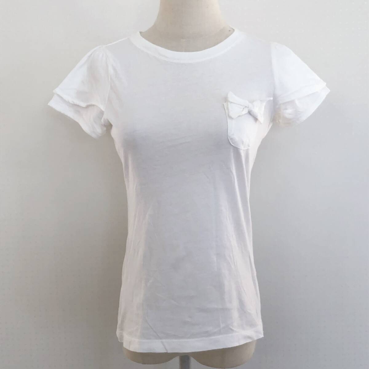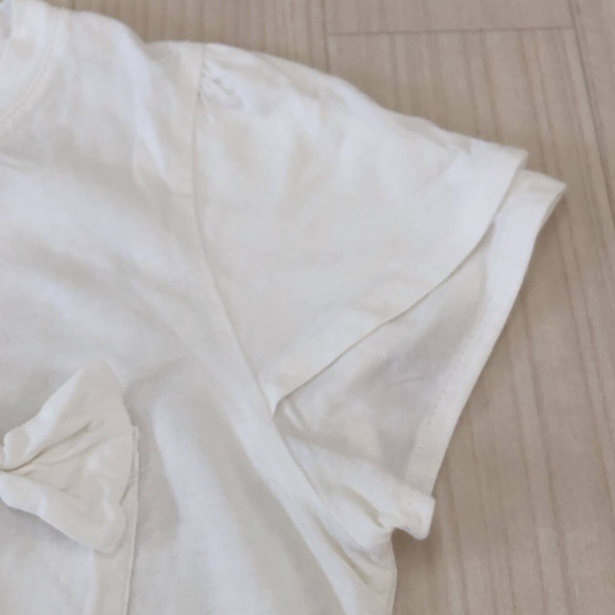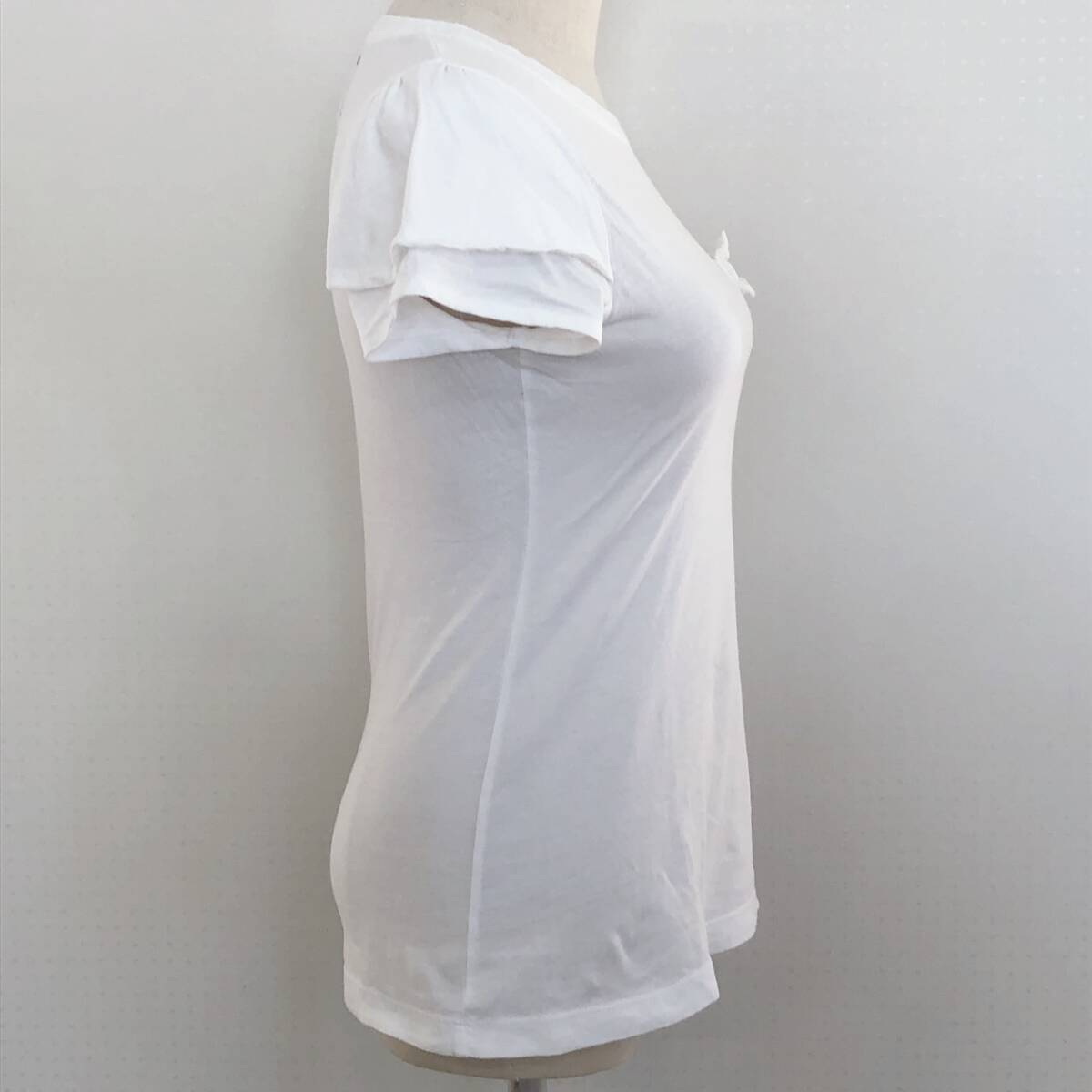 Y2364 ZARA ザラ レディース Tシャツ 薄手 半袖 胸ポケット 首元リブ M ホワイト 白 無地 コットン100% リボン キュート かわいい 春夏