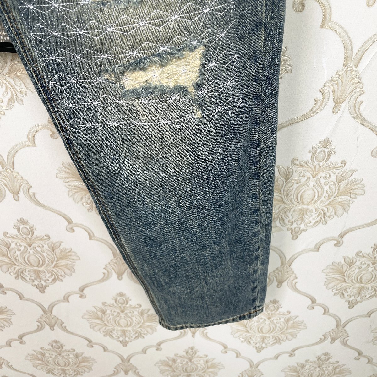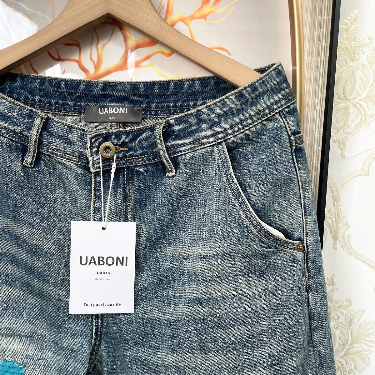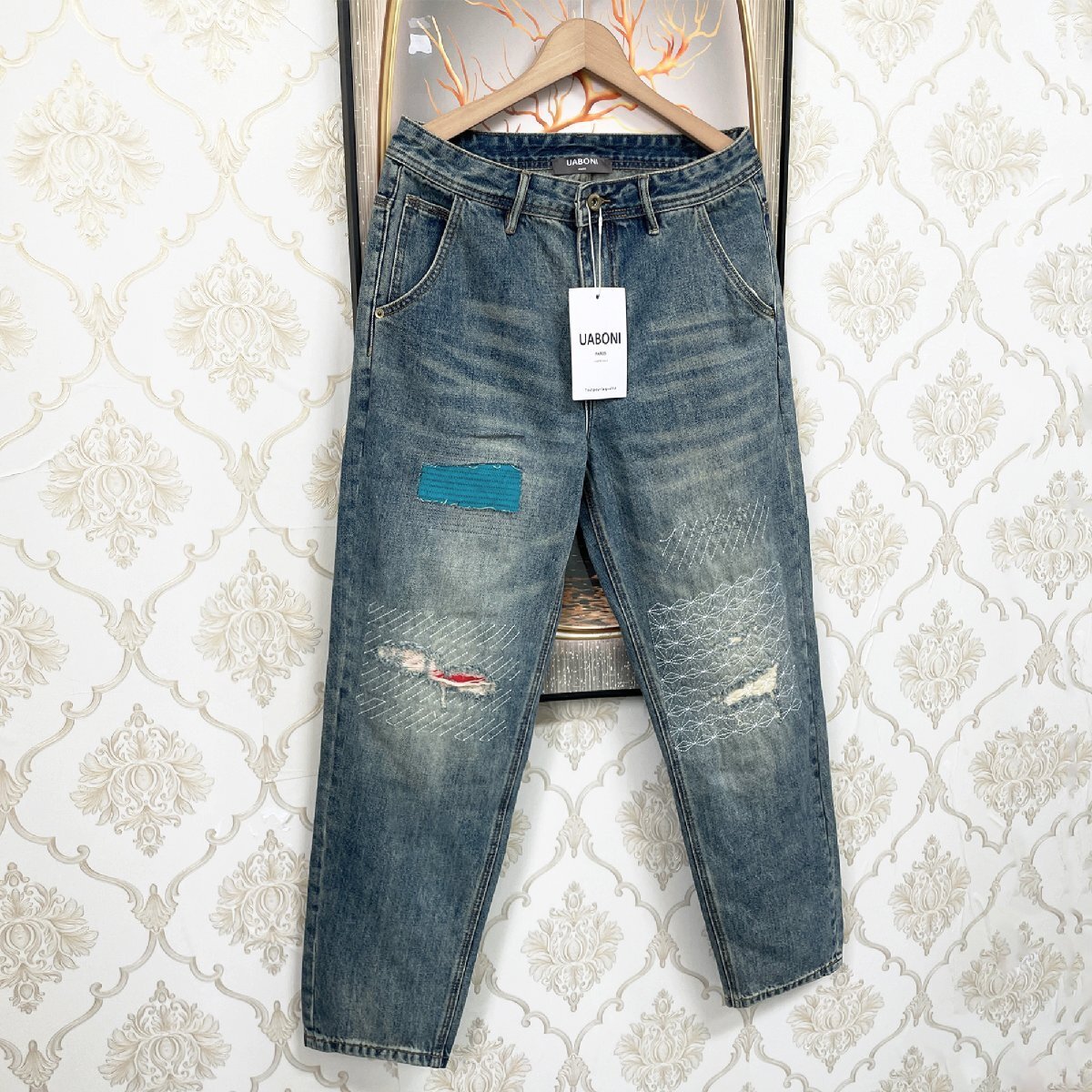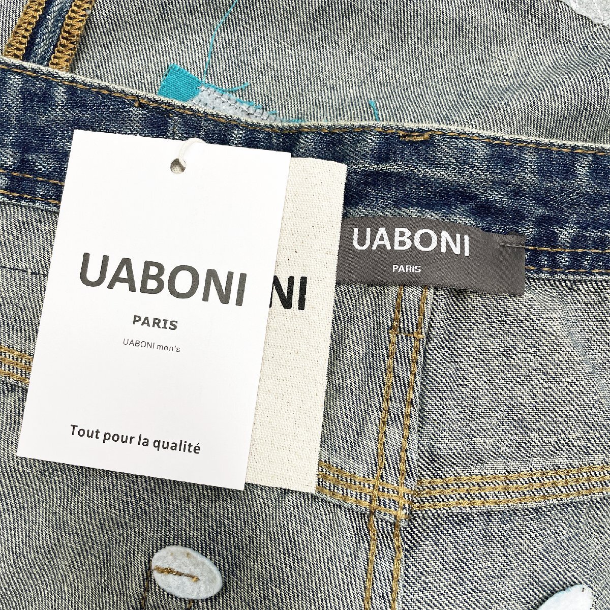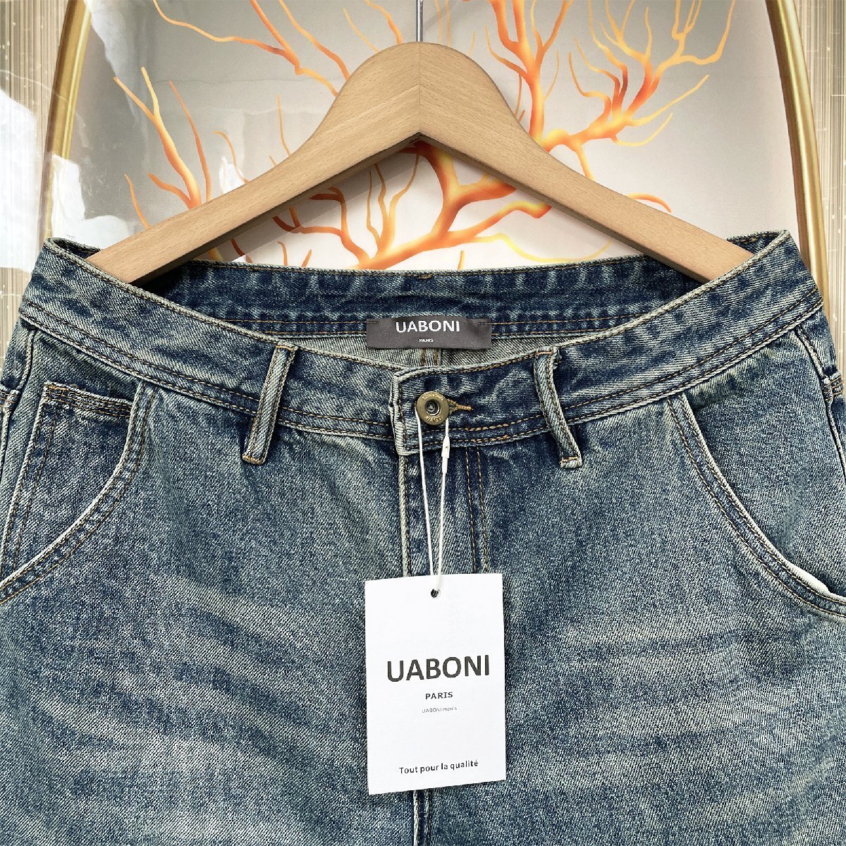 絶賛EU製&定価4万◆UABONI*Paris*デニムパンツ*ユアボニ*パリ発◆個性 ソフト 快適 ダメージ加工 切り替え ユニーク ストリート サイズ32