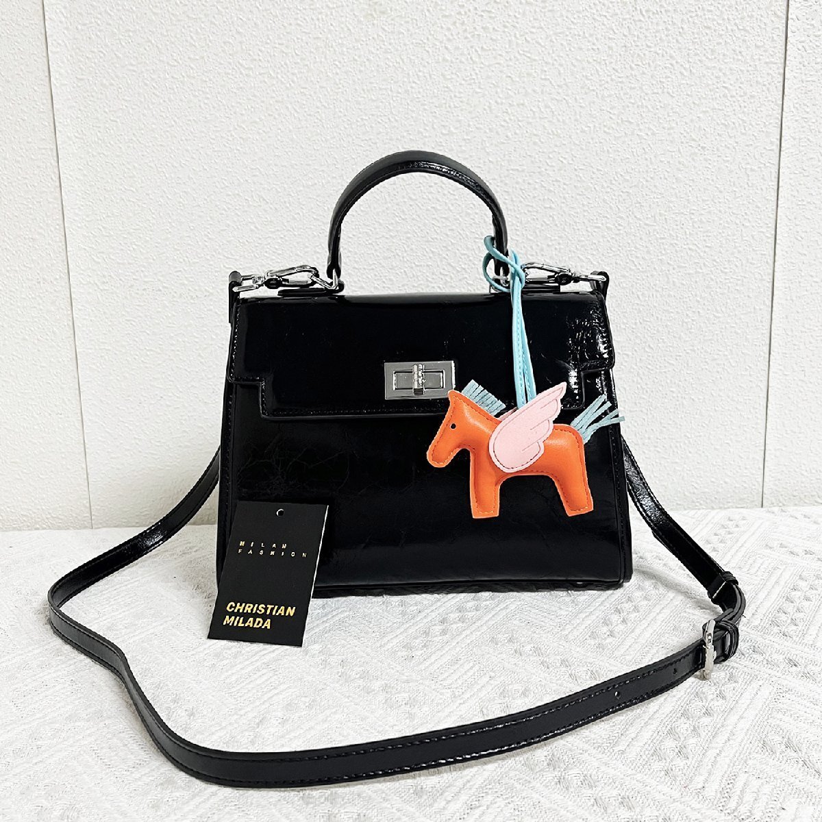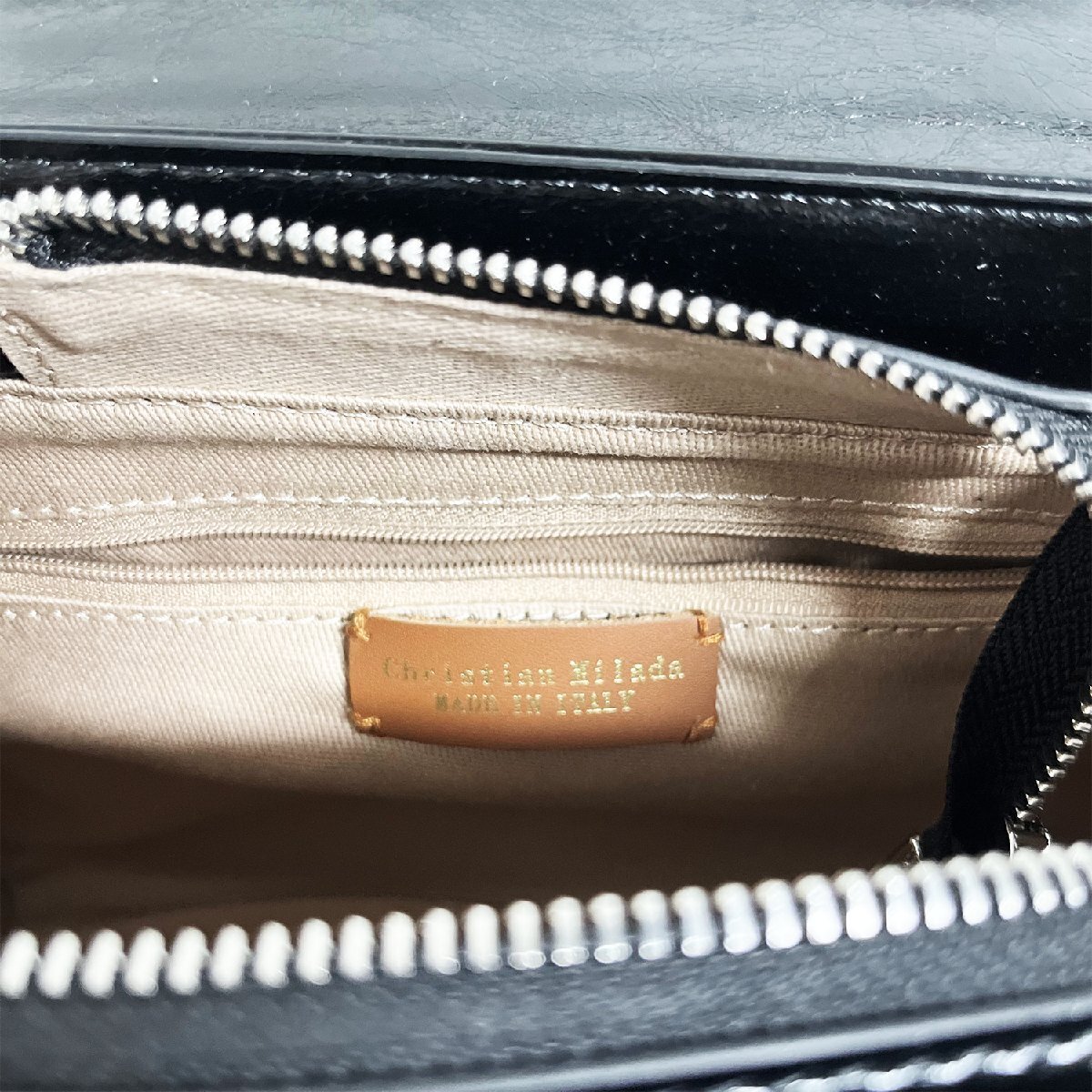 絶賛 EU製 定価12万★christian milada・ミラノ発・ ハンドバッグ ★本革 レザー 柔らか 光沢感 底鋲付き ショルダーバッグ 鞄 斜めがけ OL