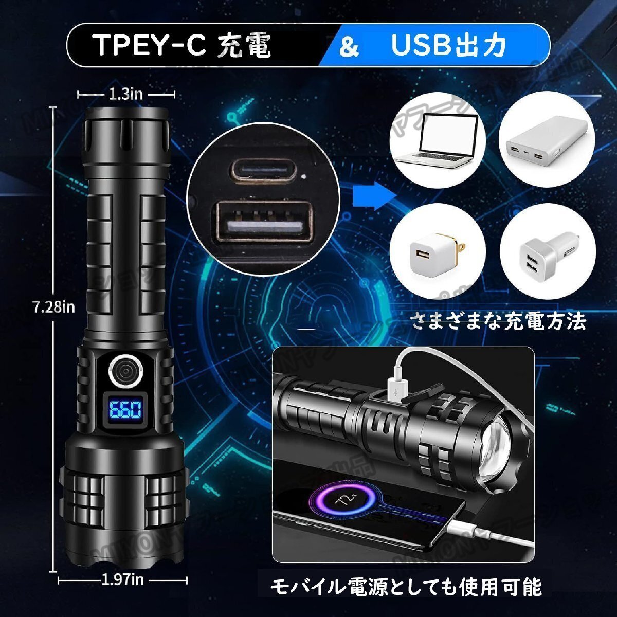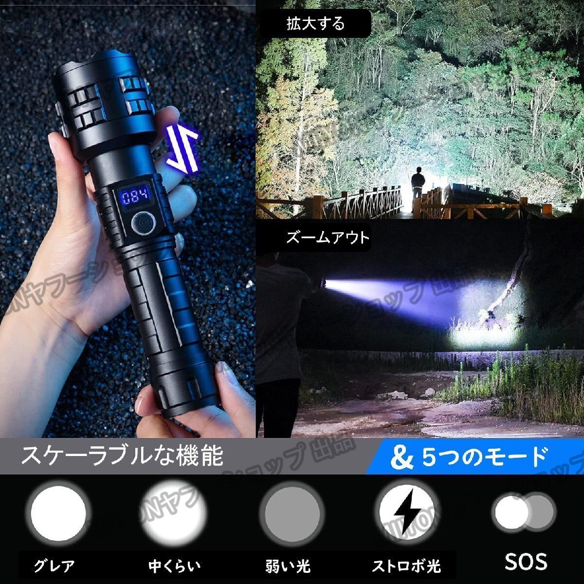 【新品未使用】 LED懐中電灯 50000ルーメン フラッシュライト Type-C充電 5段調光 充電式 懐中電灯 軍用 最強 XHP70 登山/防災 lhw214