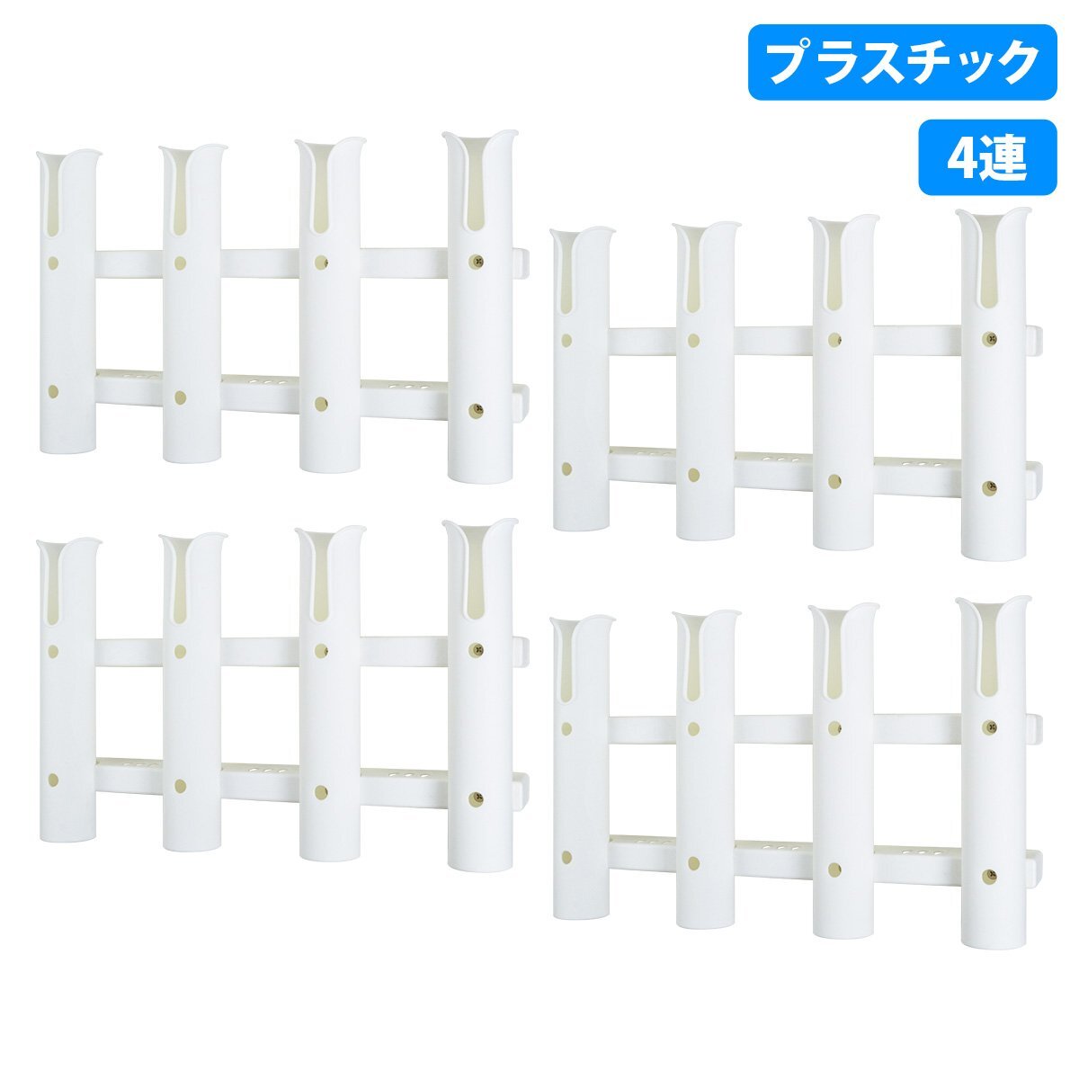 [4連 4個セット] ロッド ホルダー 竿 立て 置き 入れ 釣り フィッシング スタンド ネジ付 固定 船 漁船 ボート 白 ホワイト