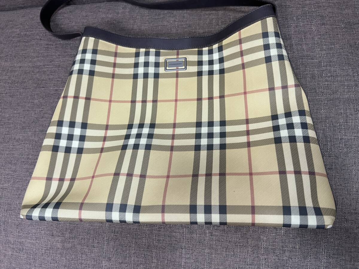 Z8130★ BURBERRY バーバリー ノバチェック PVC×レザー ワンショルダーバッグ ハンドバッグ レディース ベージュ系×ブラック系