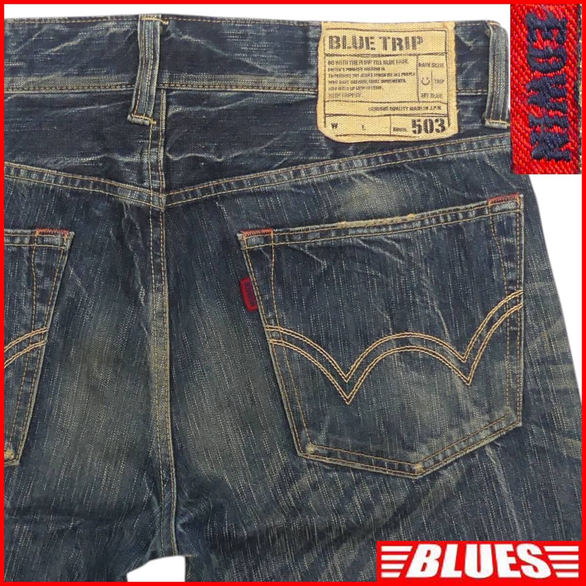 即決★EDWIN★W34 デニム ジーンズ パンツ エドウィン 503 BLUE TRIP メンズ 34×33 日本製 鬼ひげ ハチノス ボトムス
