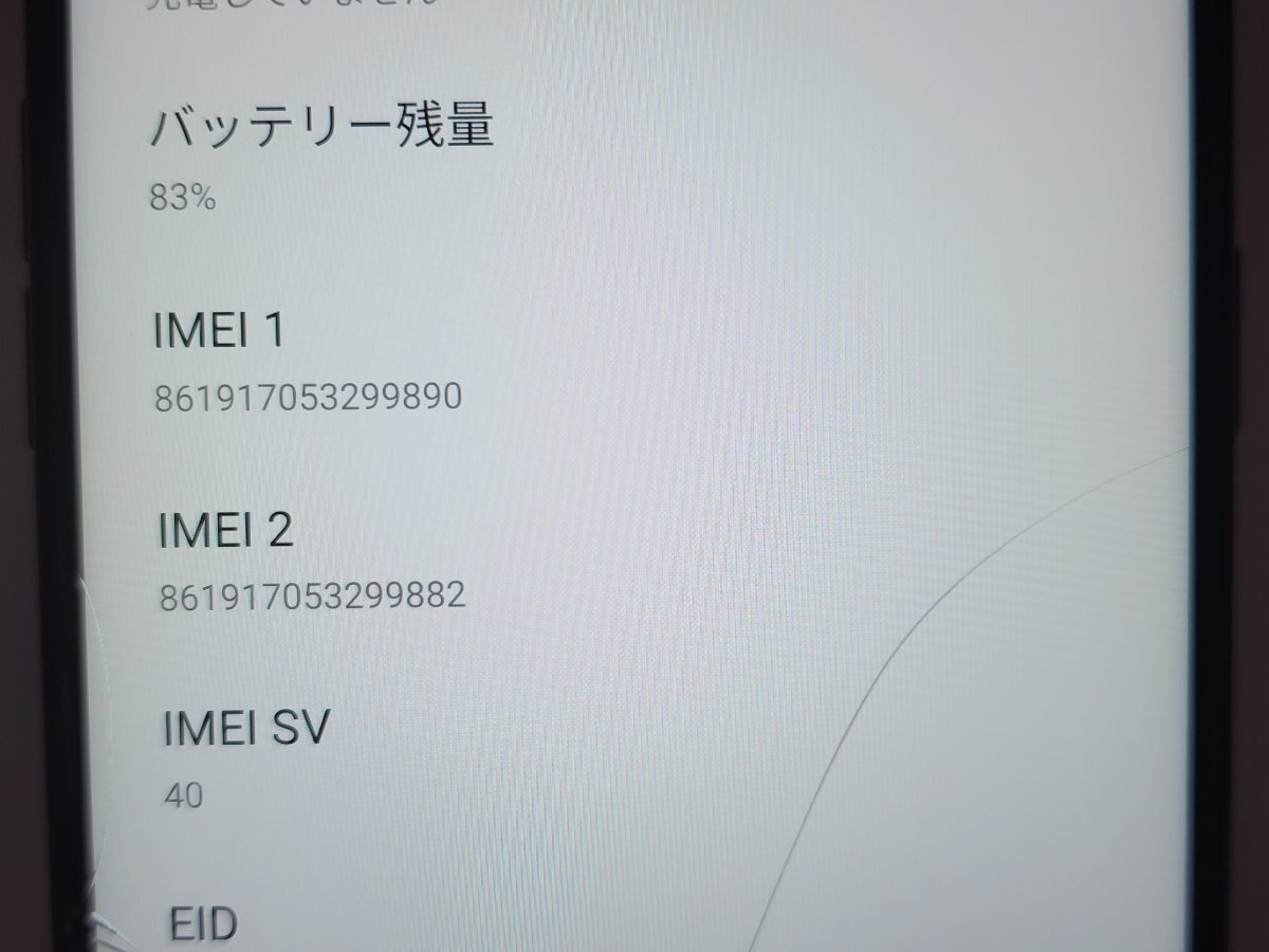 【外装状態】: J 画面に大きなひび割れがあります。側面は全体的にカバー痕や擦り傷がついていて、ところどころ塗装剥げしています。背面も全体にカバー痕や傷がついています。アウトカメラの縁に擦り傷や塗装剥げがあり、レンズカバーには傷がやや多いですがカメラは正常です。