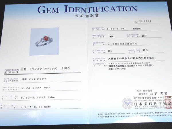 ◆安心の品質!!!【日本宝石科学協会】発行 宝石鑑別書付き!!! 希少宝石 極上パパラチャサファイア 大粒1.017ctと、極上ダイヤモンドを宝飾した、高級リングをご紹介いたします!!! 「King of Sapphire(サファイアの王)」とも呼ばれる程、サファイアの中で最も希少性が高いパパラチャサファイア!!! こちらは濃厚なオレンジピンクの極上カラーで、1.017ctと大粒サイズの極上パパラチャサファイア!!! 極上パパラチャサファイアならではの華やかなお色と艶やかな輝きを、大粒サイズでご堪能いただける大変魅力的なお品でございます!!! デザインのアクセントには、透明感溢れる輝きを放つ極上ダイヤモンドを宝飾!!! 極上ダイヤの輝きが、希少宝石 極上パパラチャサファイアを引き立てています!!! 可憐でエレガントなデザインには、高級素材K18WGを使用!!! ホワイトゴールドの質感が、より一層の高級感を演出します!!! こちら格安での出品となっておりますので、この機会是非お見逃しなく!!! ◆こちらの商品はお客様の希望がある場合のみ、評価をつけております。 評価希望のお客様は、オーダーフォームの要望欄にてお知らせくださいませ。 |