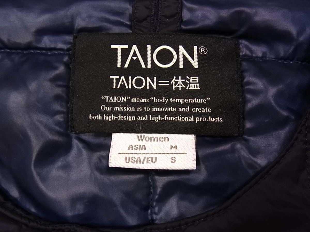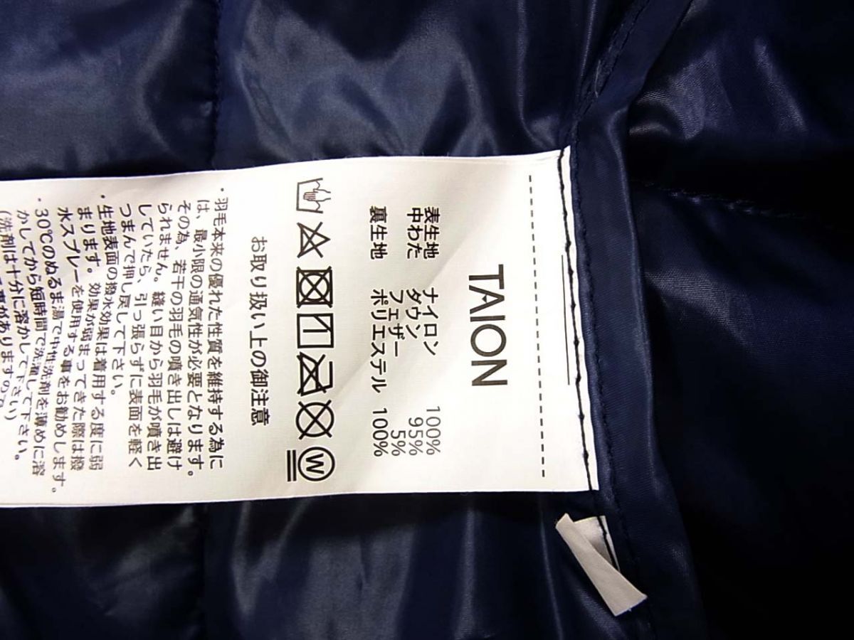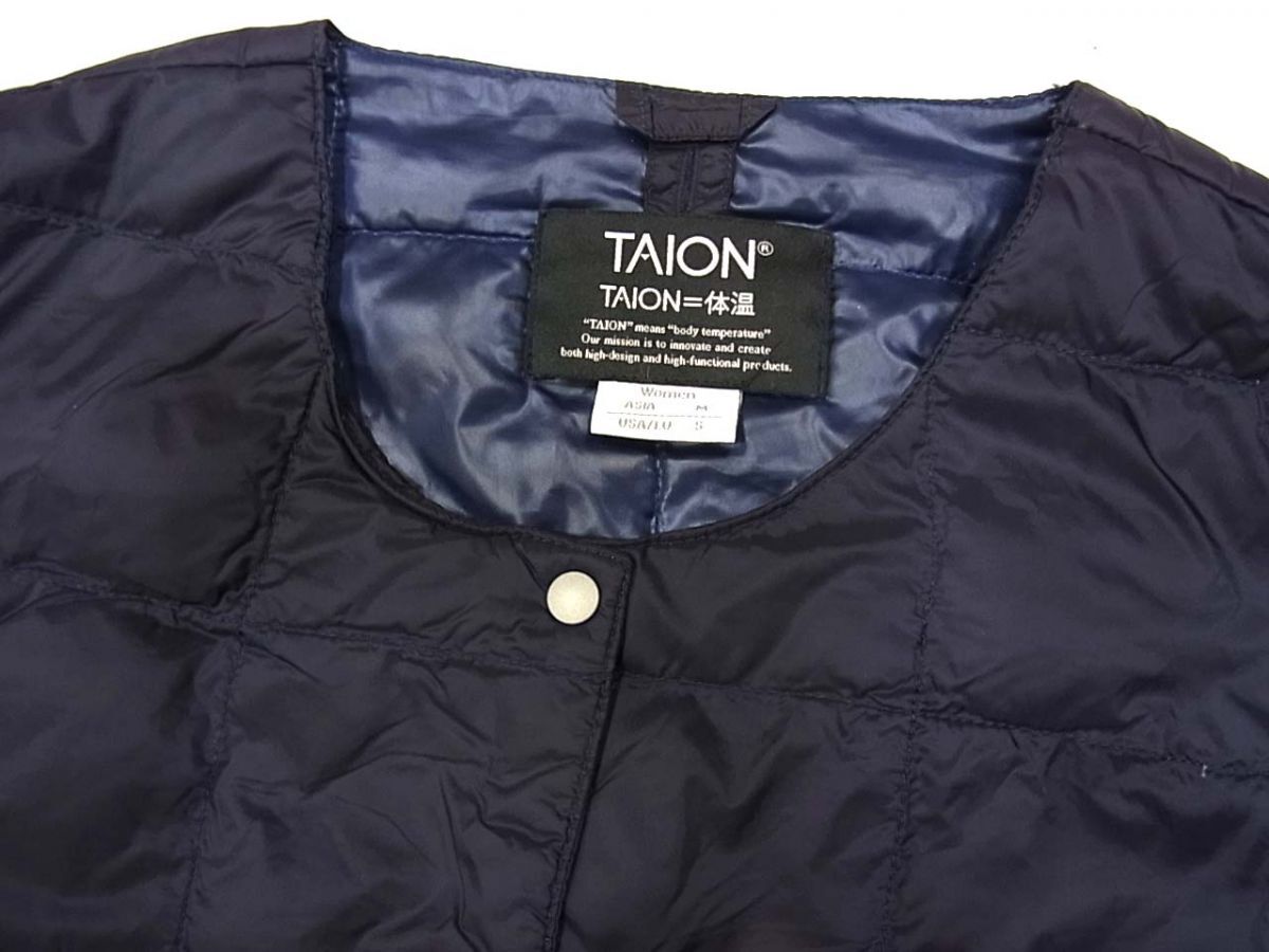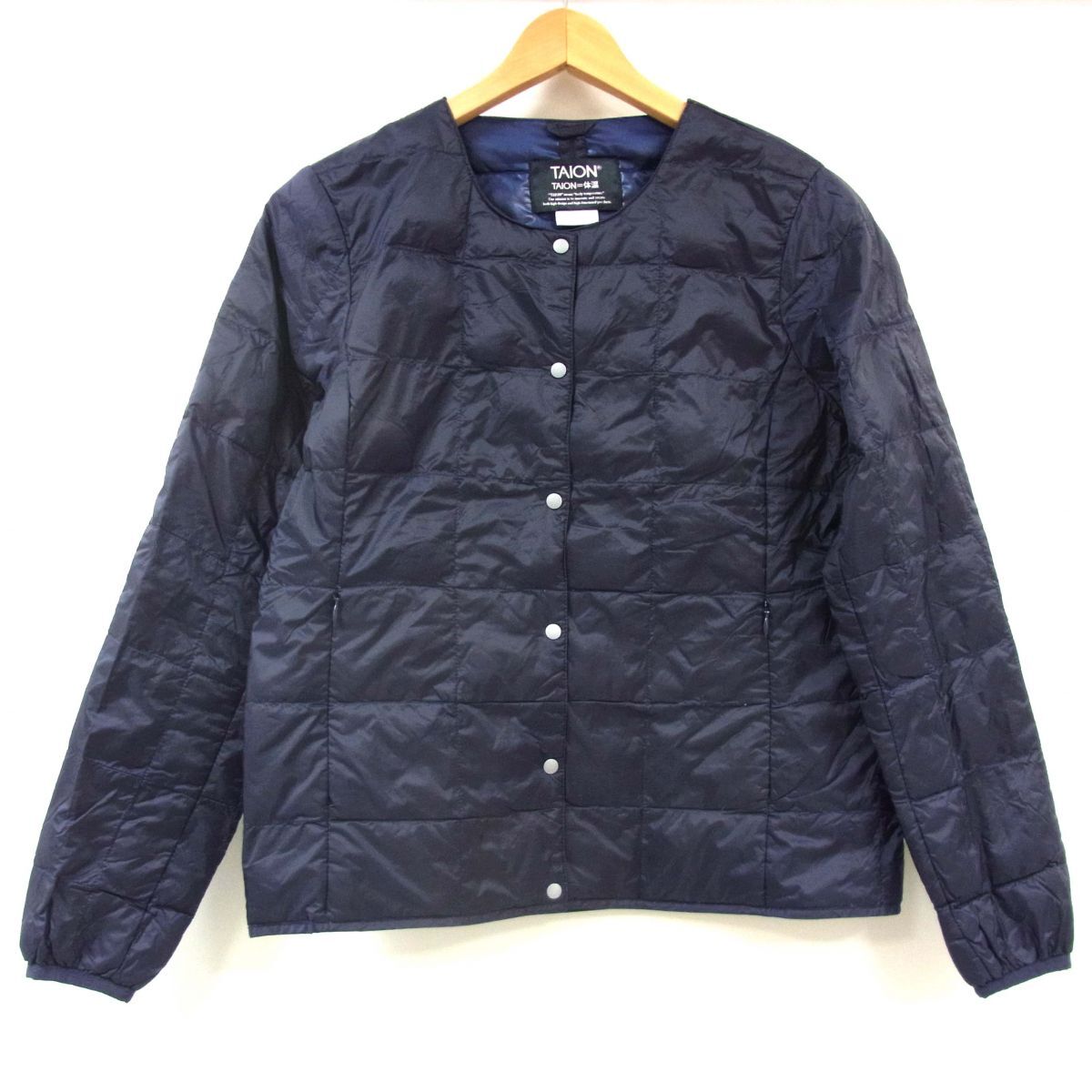 美品◆TAION タイオン インナーダウンジャケット ノーカラー 軽量 ライトダウン レディース