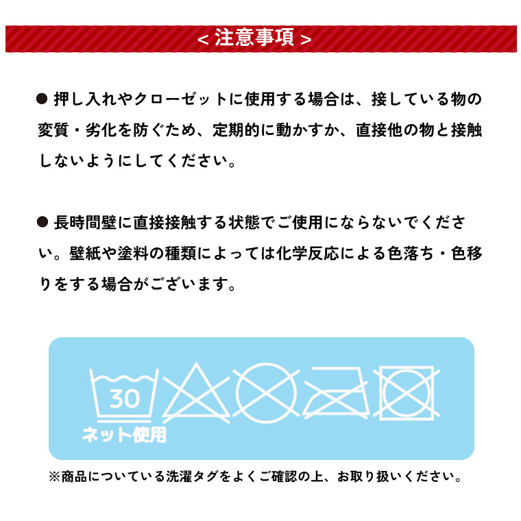 〇注意事項 | ※洗濯機をご使用の場合は必ず洗濯ネットをご使用頂き、手洗いモード・弱水流で行ってください。 |
