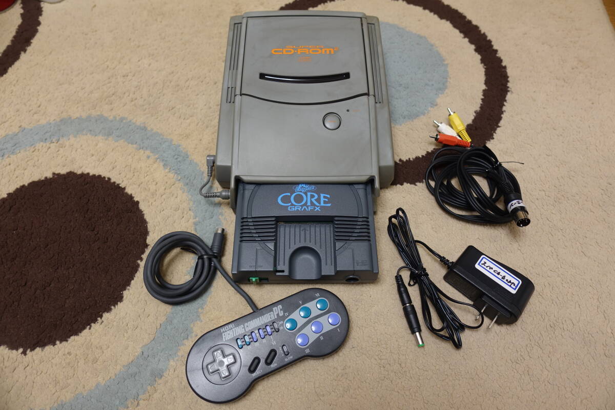 PCエンジンCORE 本体+ スーパーCD-ROM2 本体と ACアダプター AVケーブル付きです。