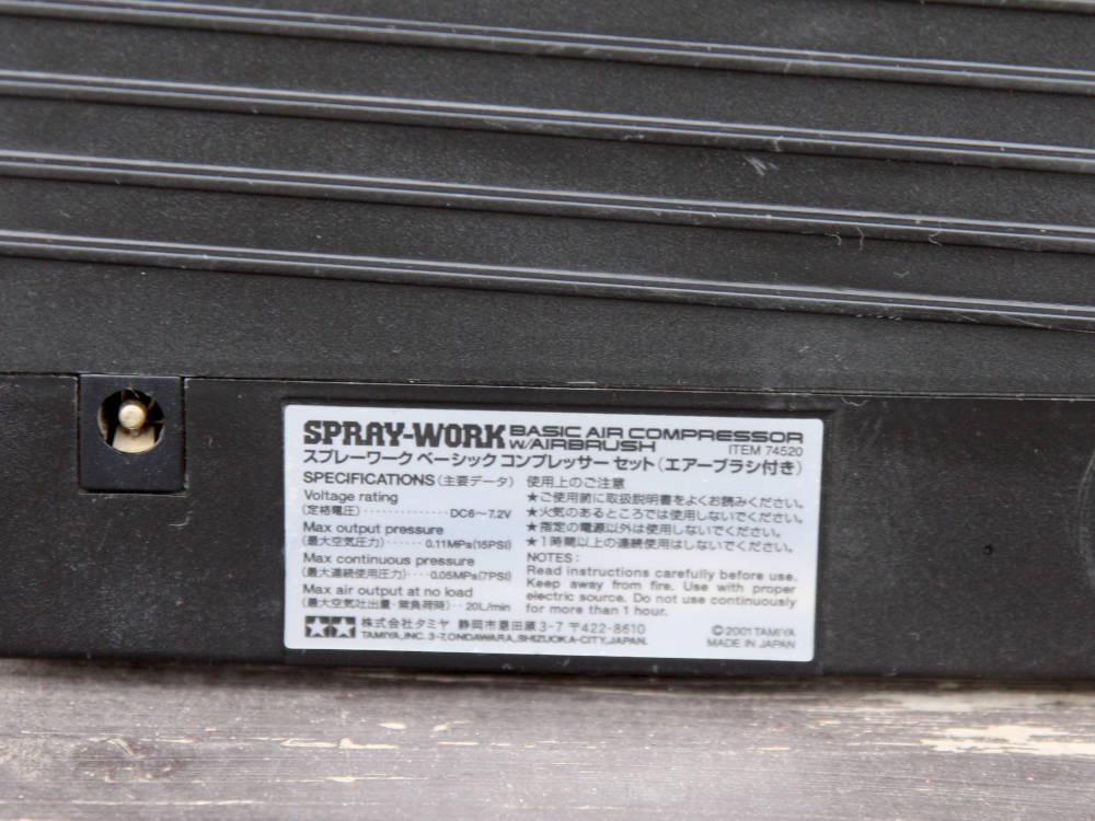 ●タミヤ スプレーワーク ベーシックコンプレッサー 本体、ACアダプタのみ です。 貰い物で、他にもコンプレッサーを持っていたので入手後は未使用です。出品にあたっての動作確認はしてあります。 あまり使われていなかったのか汚れはコード先端くらいです。画像を参考にしてください。 画像にあるものだけで他の付属品はありません。 この状態でモーターの回転とエアがちゃんと出ていることを確認しました。 実際の塗装での確認ではないので、長時間運転の確認はしていません。 到着時の初期不良以外はノークレームでお願いします。 |