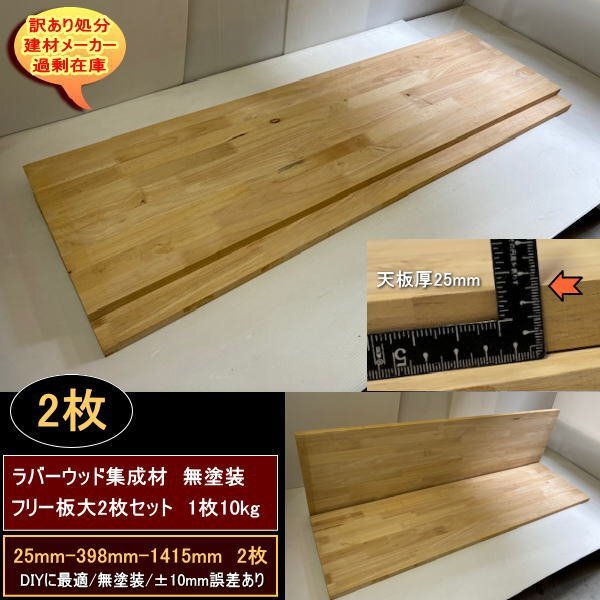 | タイトル | フリー板大判 W398mm-D1415mm-H25mm 2枚 合計20kg 無塗装 ラバーウッド集成材 天板厚25mm 強度抜群材質 送料無料 訳あり処分 重量あり DIY 最安値 |
