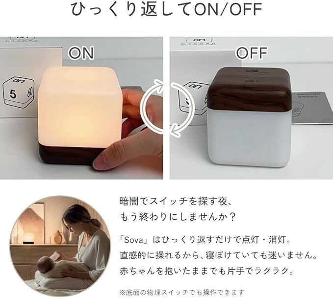 Amazon | 【ひっくり返してON/OFF】 授乳ライト 間接照明 LED 卓上ライト Sova ソヴァ【調光 タイマー コードレス Type-C充電 1200mAh】ナイトライト ベッドサイドランプ テーブルランプ 読書灯 寝室 子供部屋 玄関 かわいい おしゃれ リビング ベッドライト ベッドサイド 読書 照明 北欧 韓国 ナチュラル コンパクト 常夜灯 充電式 バルーナ (ブナ)