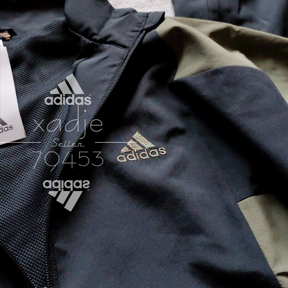 新品 正規品 adidas アディダス 上下セット ナイロン ジャージ セットアップ 黒 ブラック カーキ ロゴ 刺繍 薄手 定価9350円 M