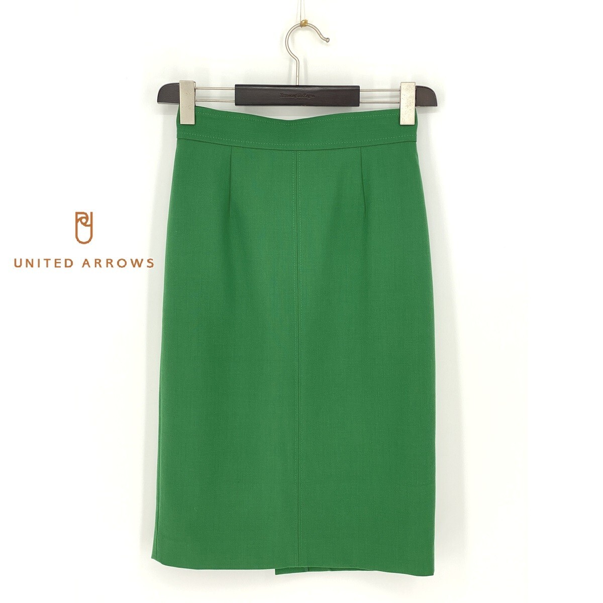 B0520/極美品 UNITED ARROWS ユナイテッドアローズ ウール ストレッチ 無地 タイト スリット ロング ミモレ丈 スカート 38 M 緑 レディース