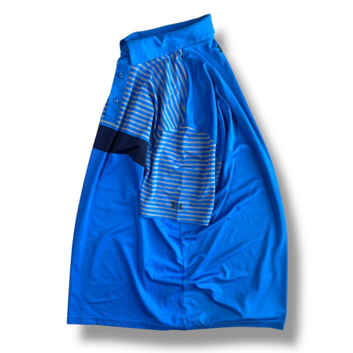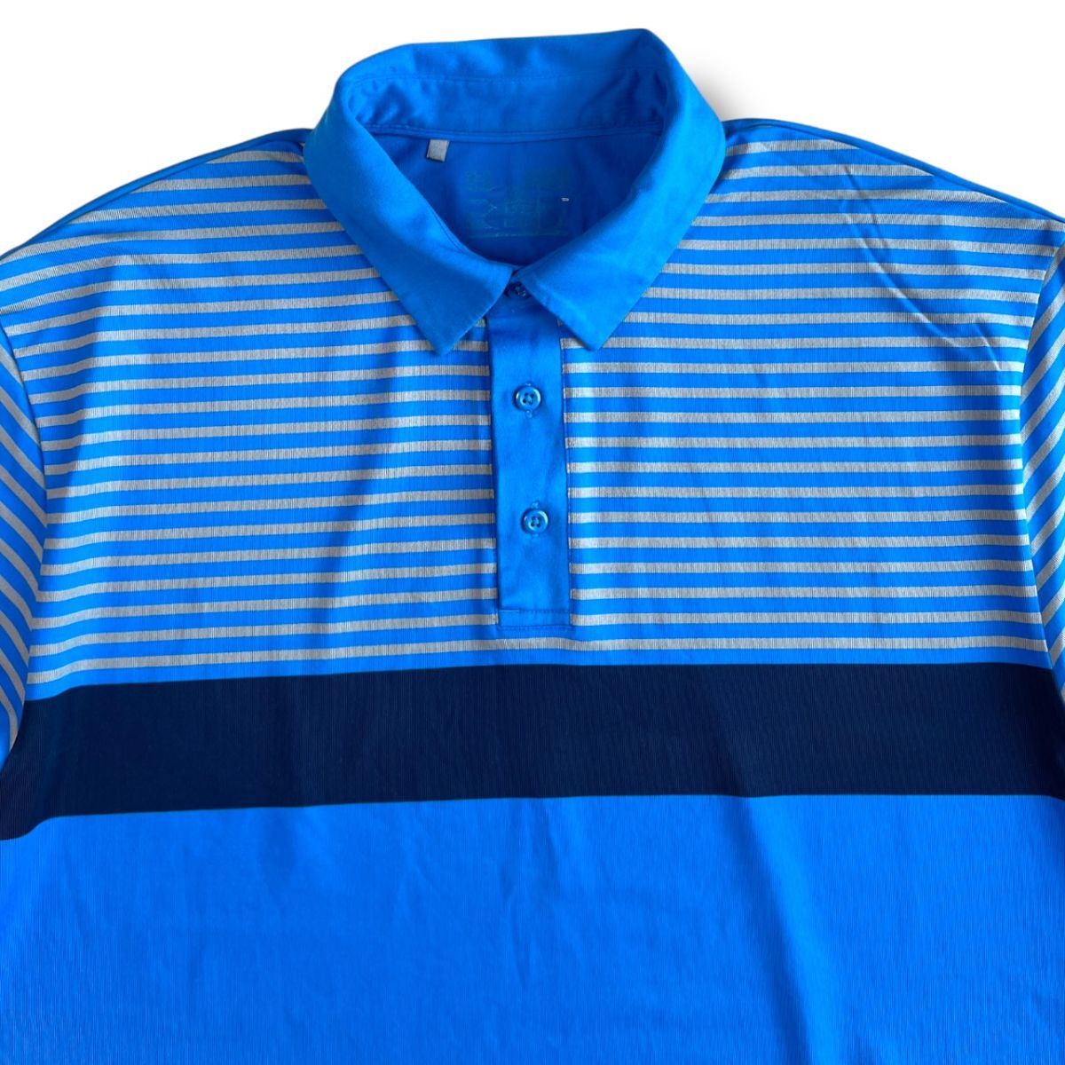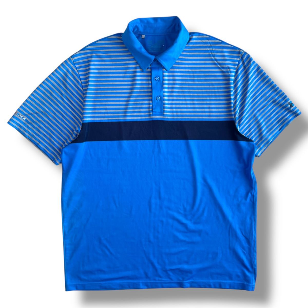 UNDER ARMOUR アンダーアーマー メンズ ボーダー 半袖 ポロシャツ 青 大きめ ゴルフ ウェア スポーツ 襟付き ポリエステル 古着