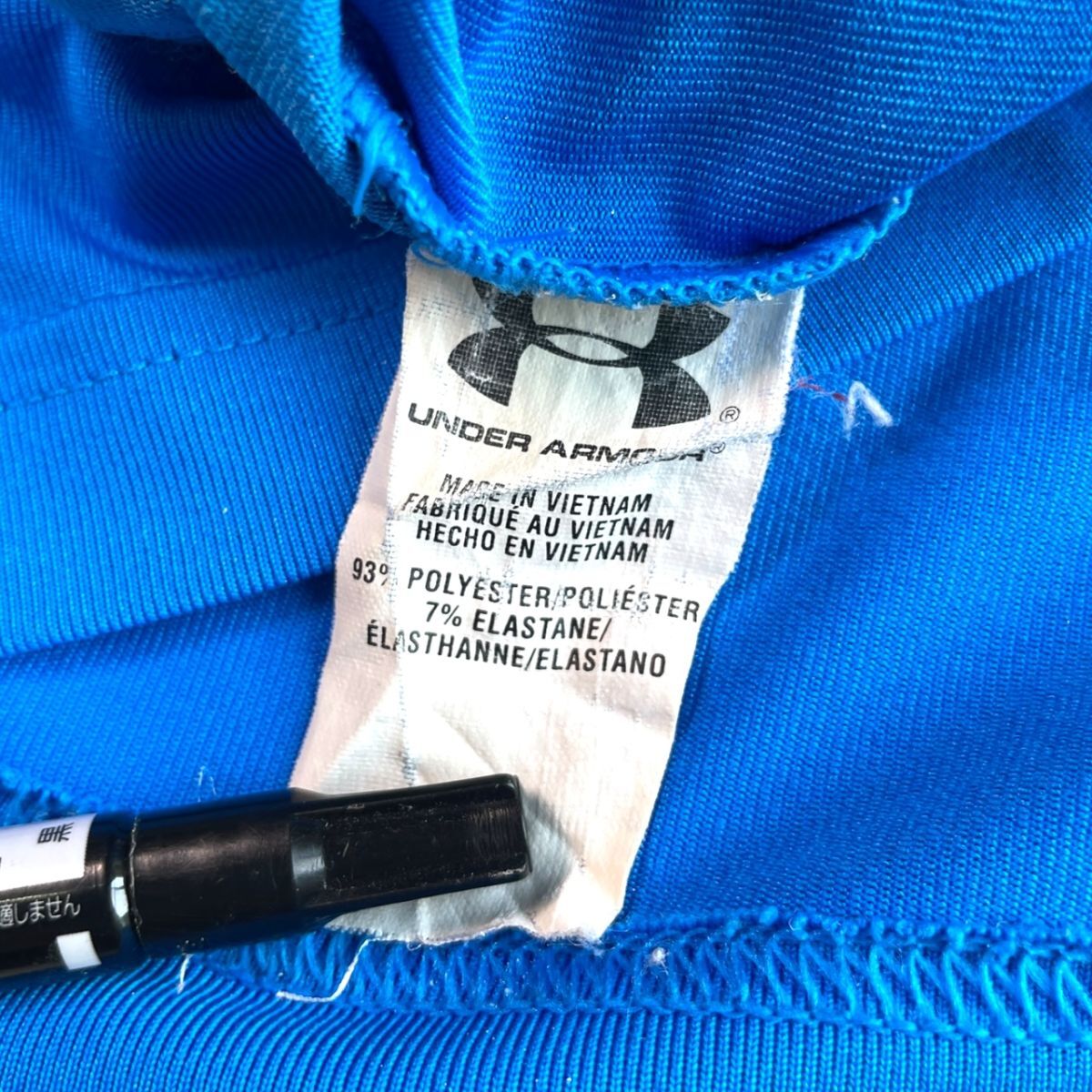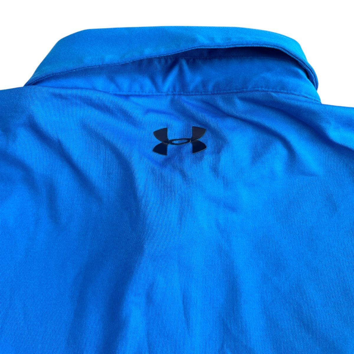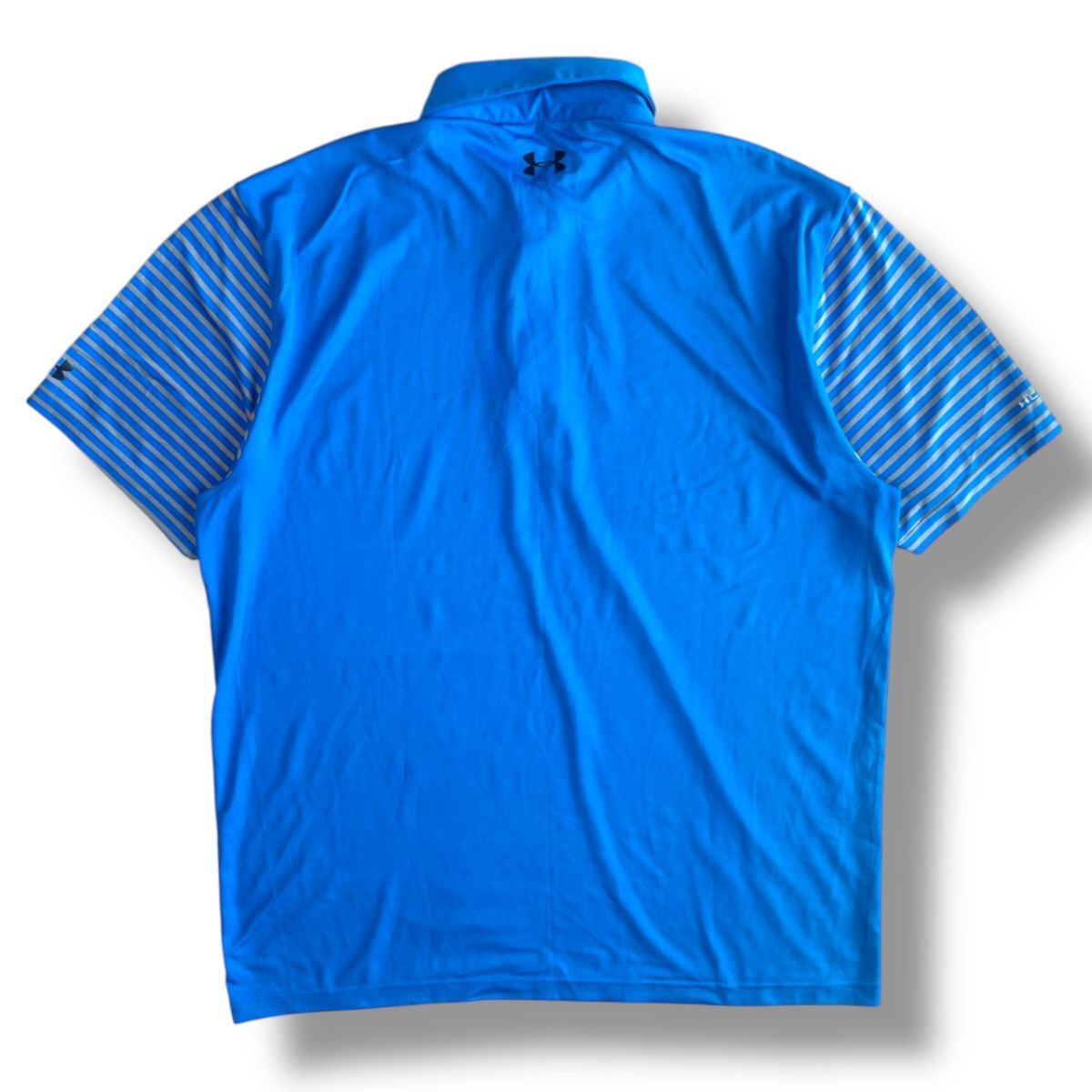 UNDER ARMOUR アンダーアーマー メンズ ボーダー 半袖 ポロシャツ 青 大きめ ゴルフ ウェア スポーツ 襟付き ポリエステル 古着